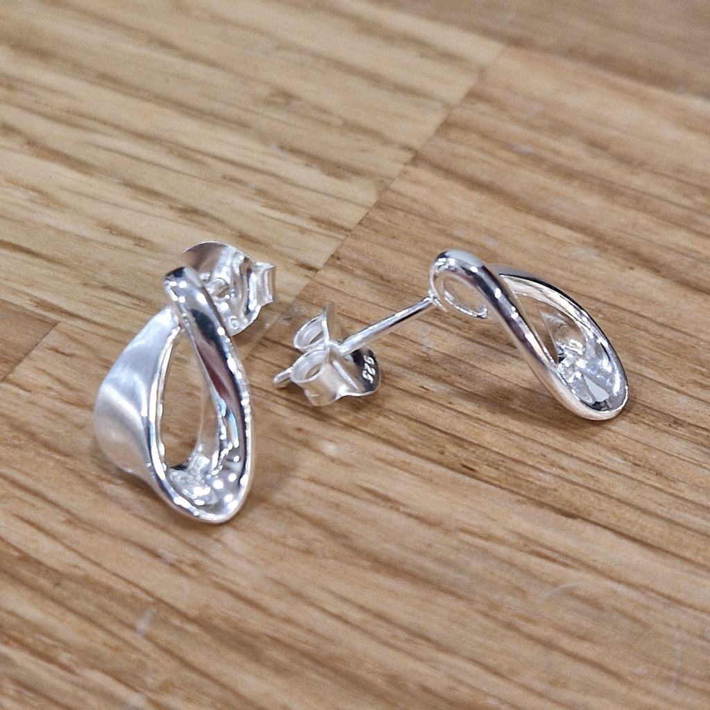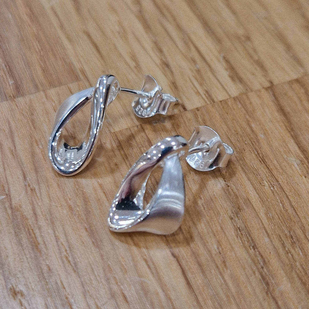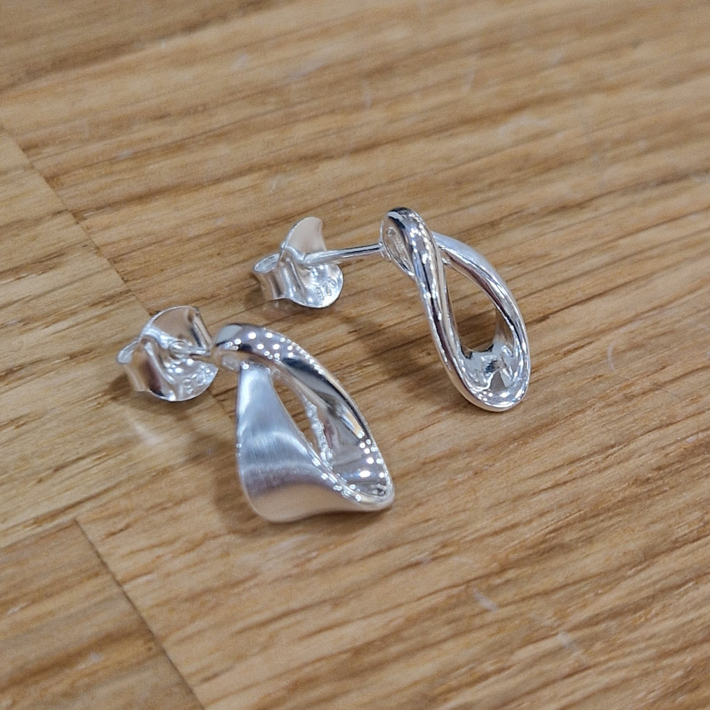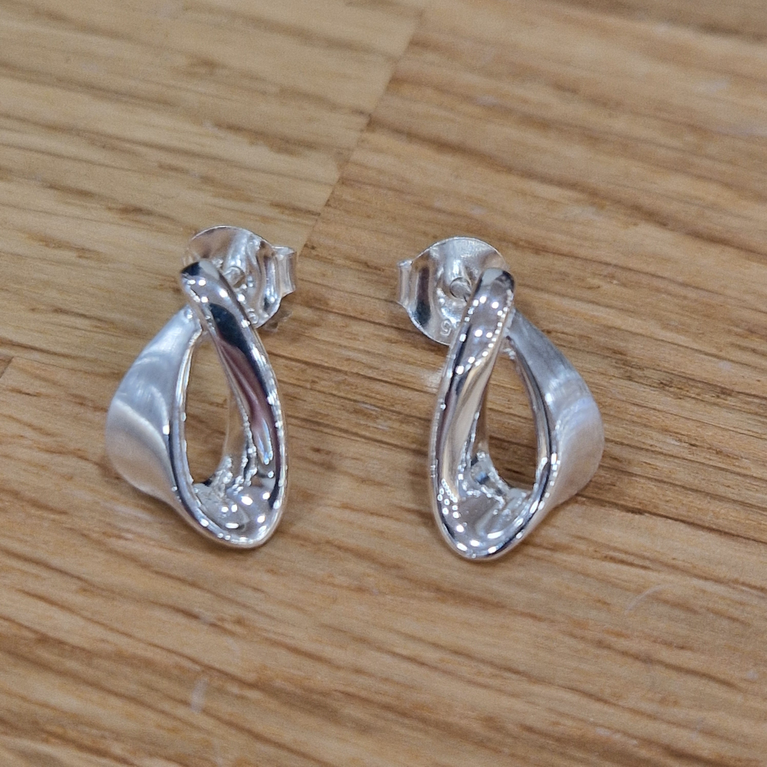 Contemporary crossover loop design silver stud earrings with a matt and polished two tone finish, pair with the matching pendant for a complete look.