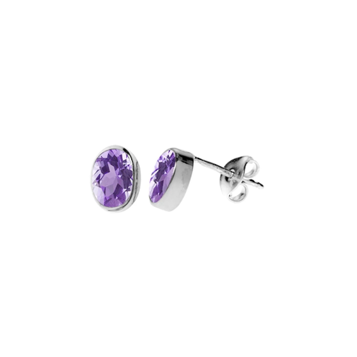 Classic 6x4mm oval faceted amethyst stud earrings set in silver. A great staple to have in your everyday jewellery collection.