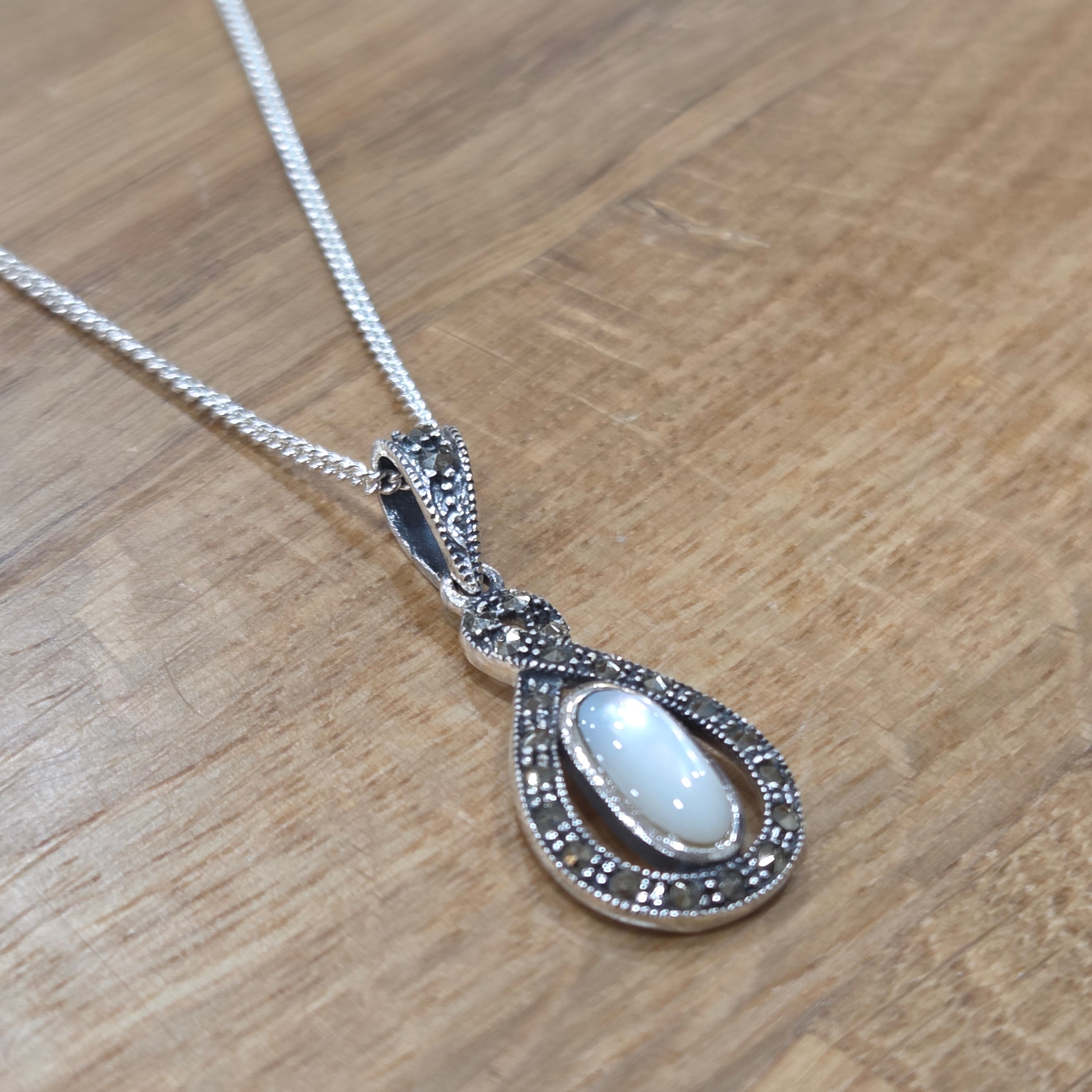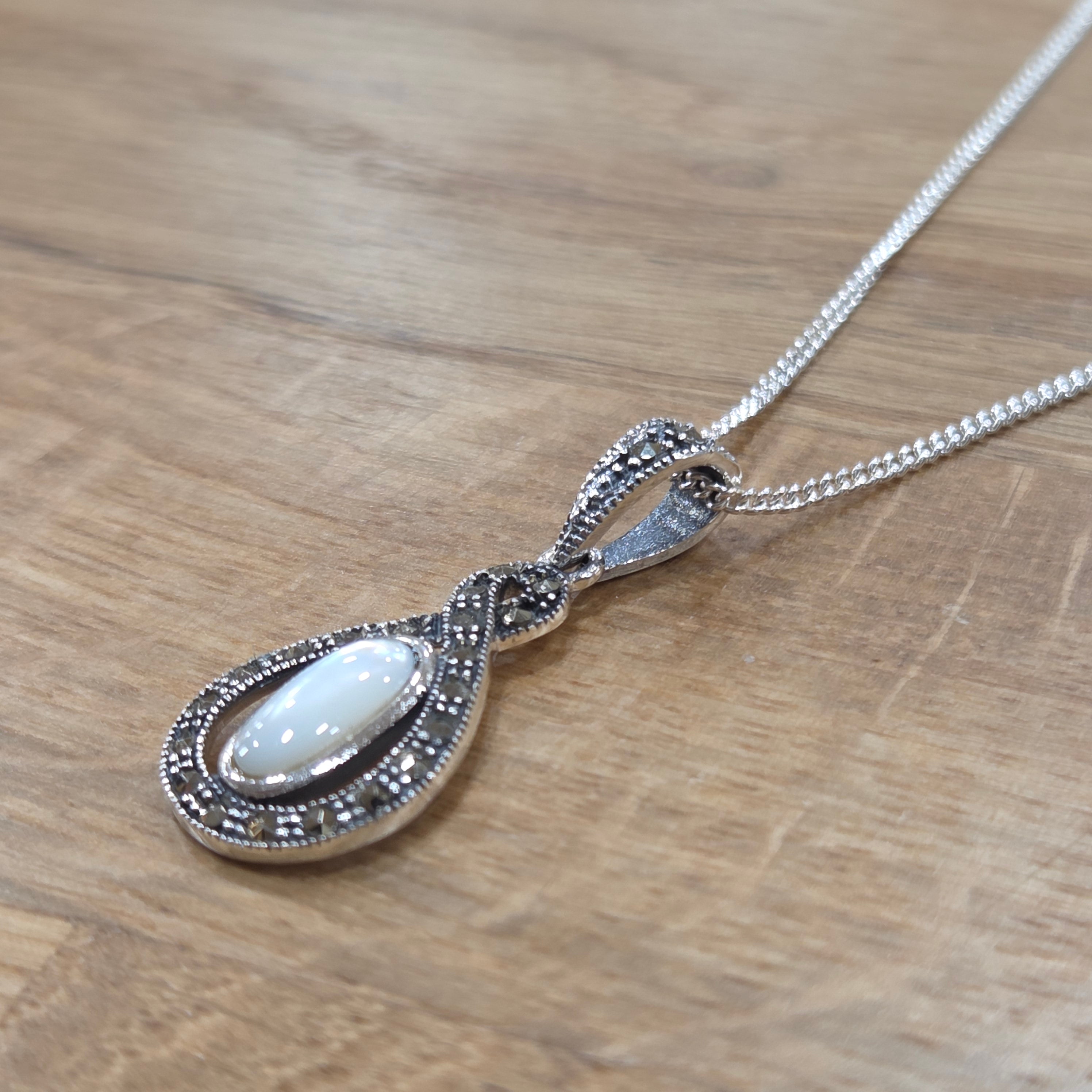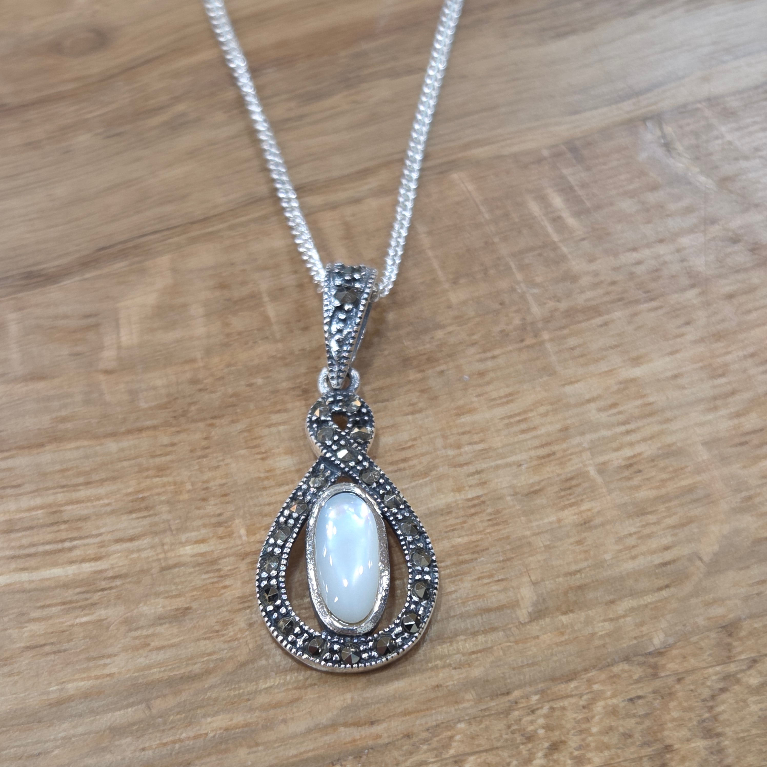Marcasite & Mother Of Pearl Infinity Knot Pendant