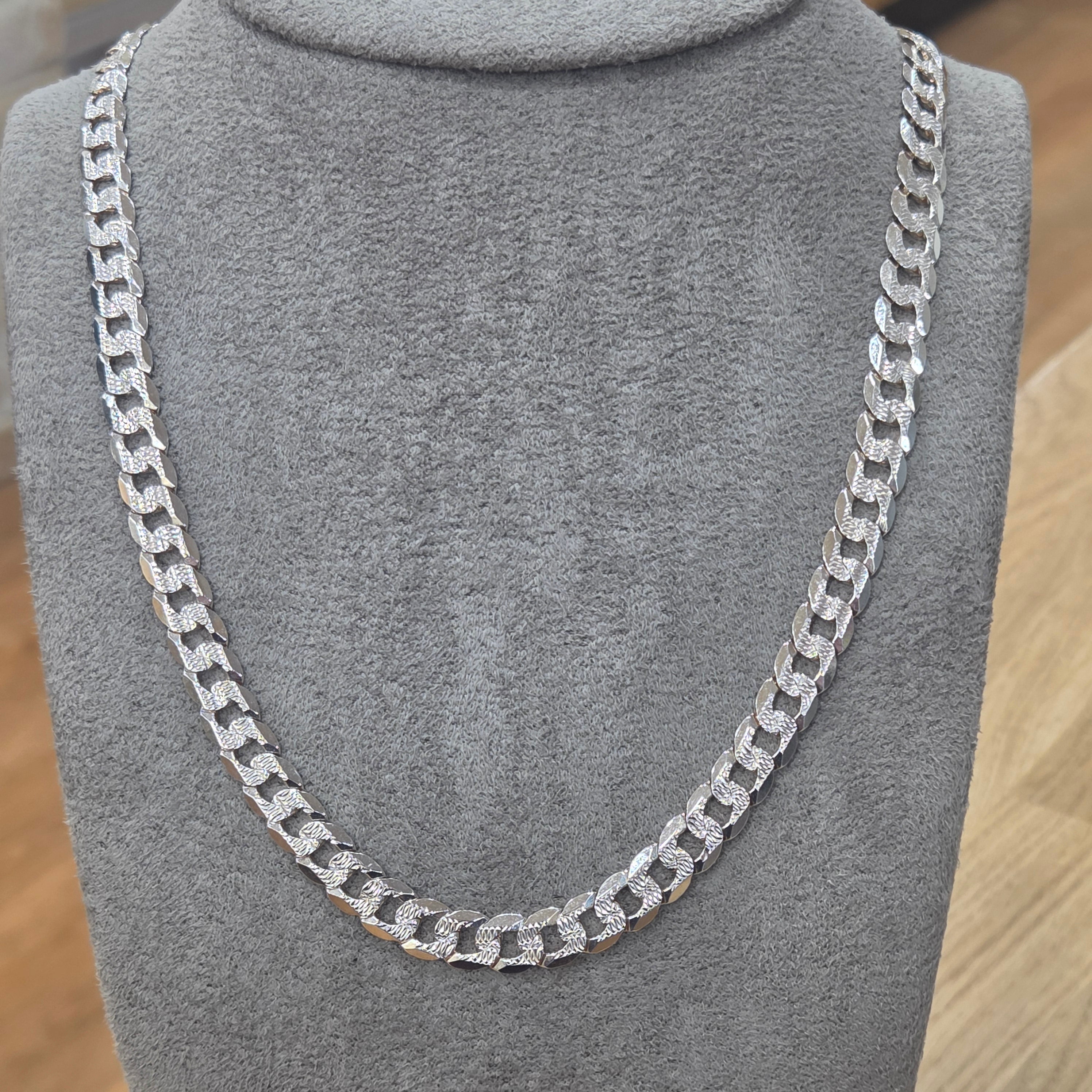 Men's sterling silver curb chain with a patterned side for added texture. Pair with the matching bracelet for a co-ordinated look.
