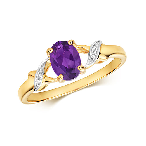9ct Gold Amethyst & Diamond Crossover Ring