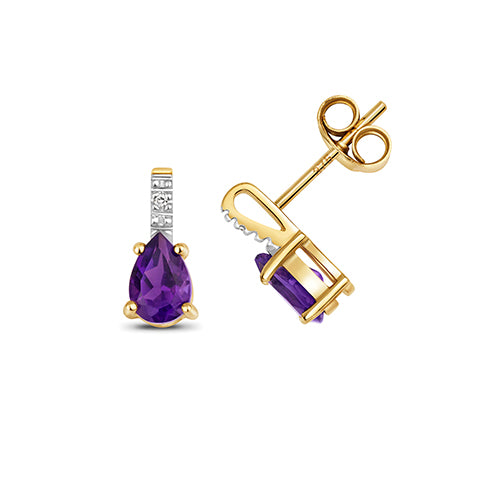 Discover timeless elegance with these stunning 9ct gold studs that seamlessly transition from day to night. The captivating amethyst stone shines brilliantly at the centre of each earring, while a sparkling diamond sits gracefully above to enhance the overall radiance. Set in warm yellow gold with a claw setting designed to amplify light, these earrings are a wonderful addition to any jewellery collection for those who cherish understated sophistication and genuine quality.