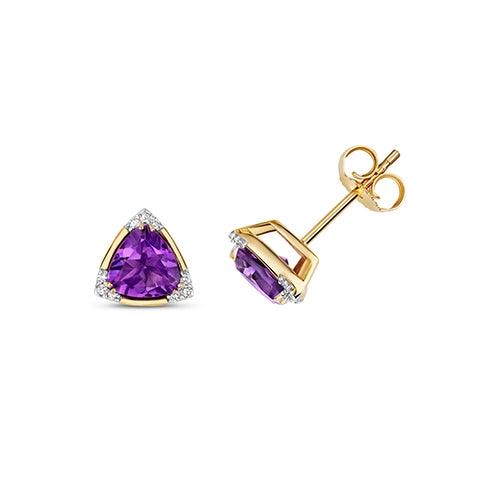 Crafted from lustrous yellow gold, these stunning trillion-cut amethyst earrings blend sophistication with contemporary flair. A vibrant amethyst at its heart, beautifully framed by sparkling diamond accents that catch the light from every angle. Perfect for those seeking jewellery that transcends trends, these studs deliver enduring elegance and undeniable charm to any collection. For the complete look, style these earrings with their pendant counterpart.