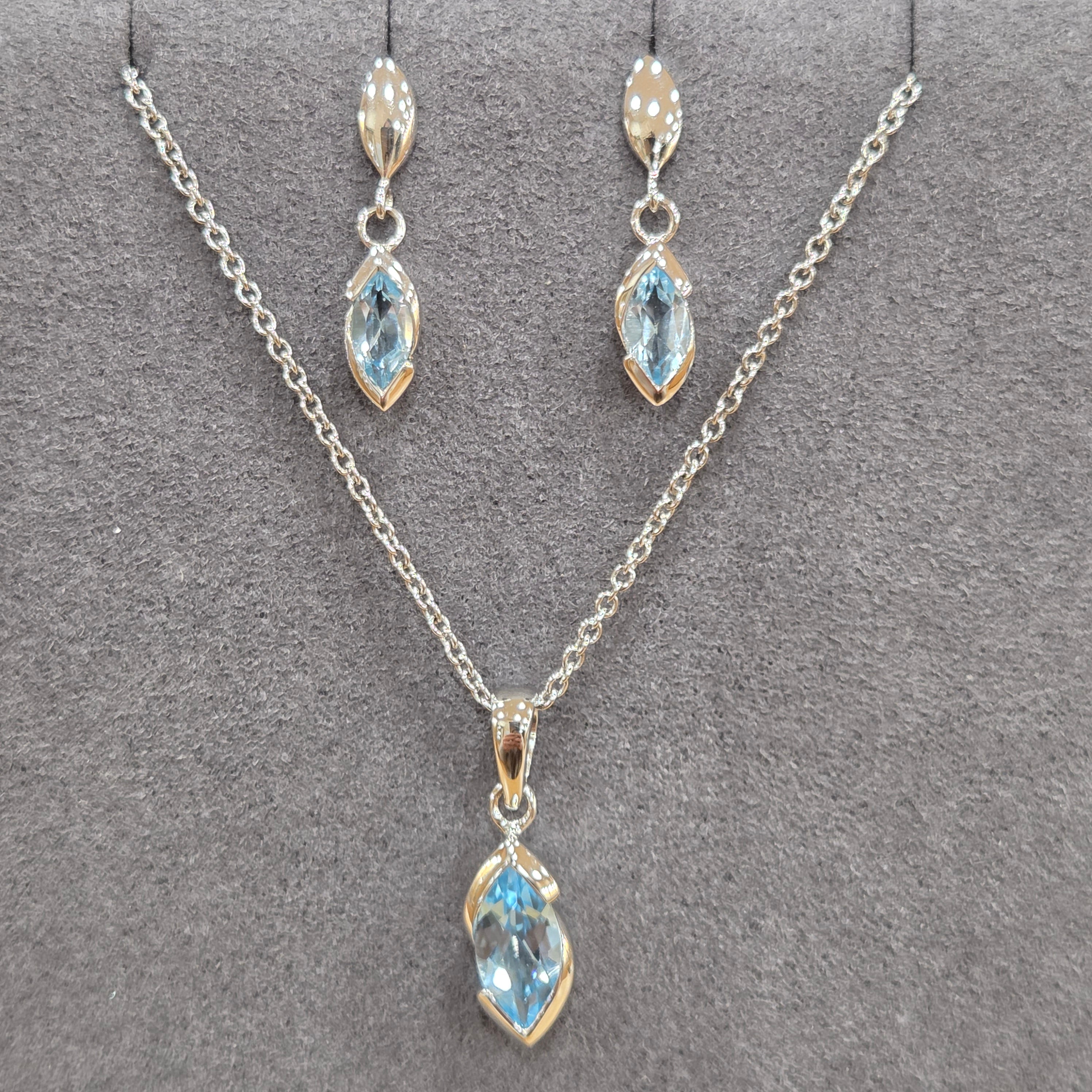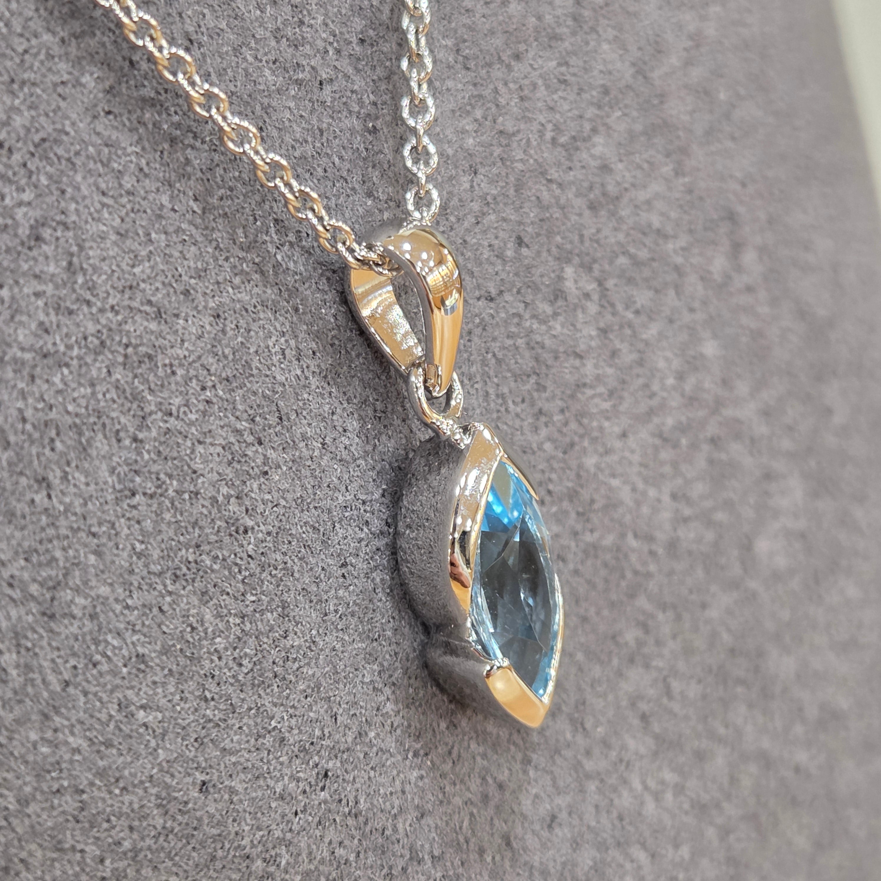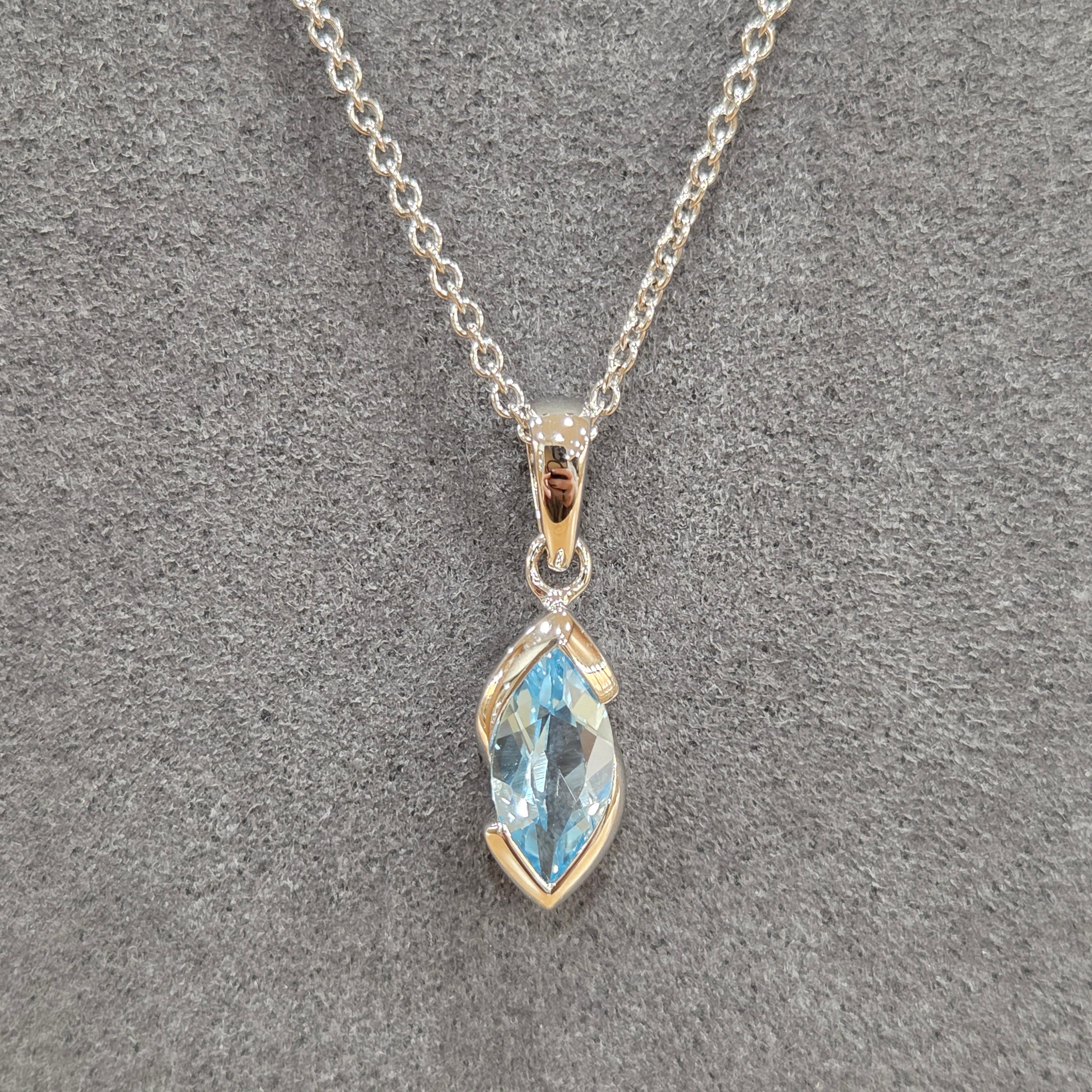 Elevate your style with this sleek sterling silver pendant featuring a marquise-cut blue topaz and a polished rhodium finish. It arrives on a 16" silver chain with a 1" extender for the perfect fit. Complete your ensemble by pairing it with the matching drop earrings for a sophisticated, coordinated look.