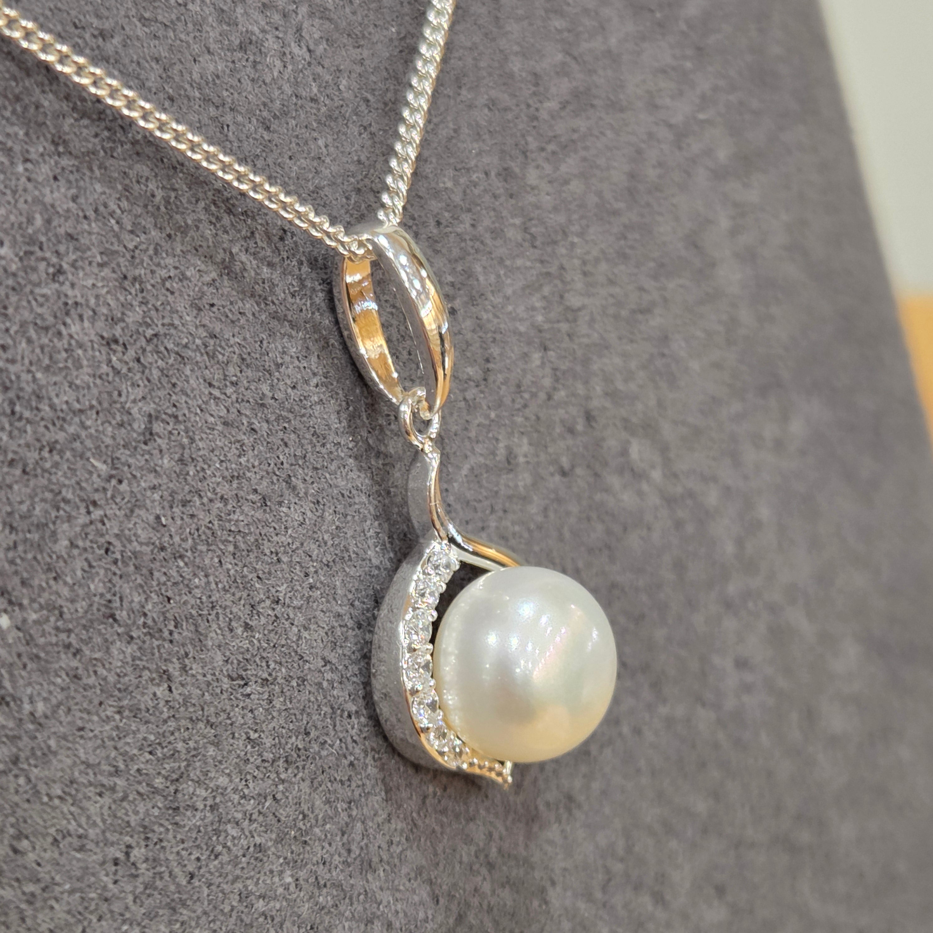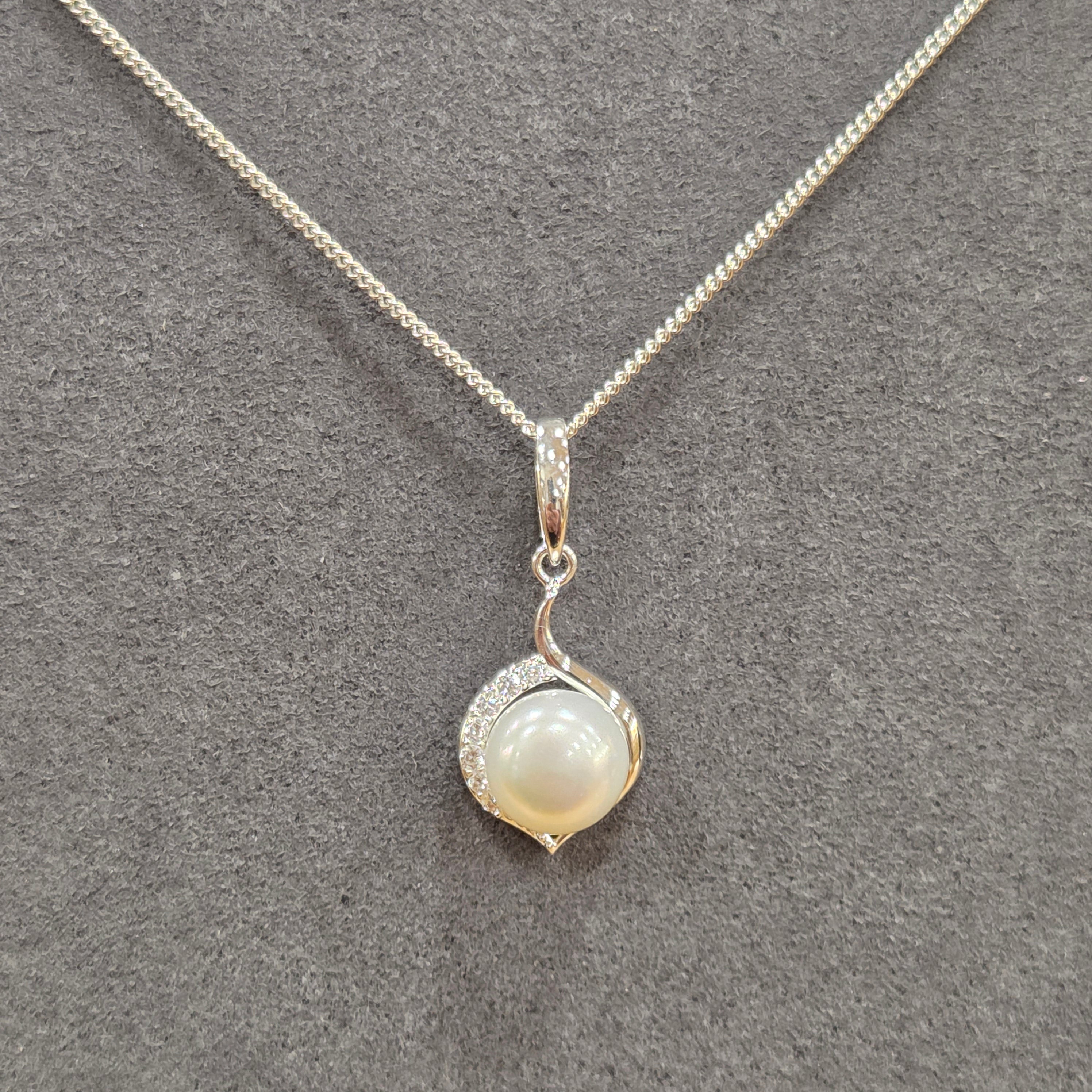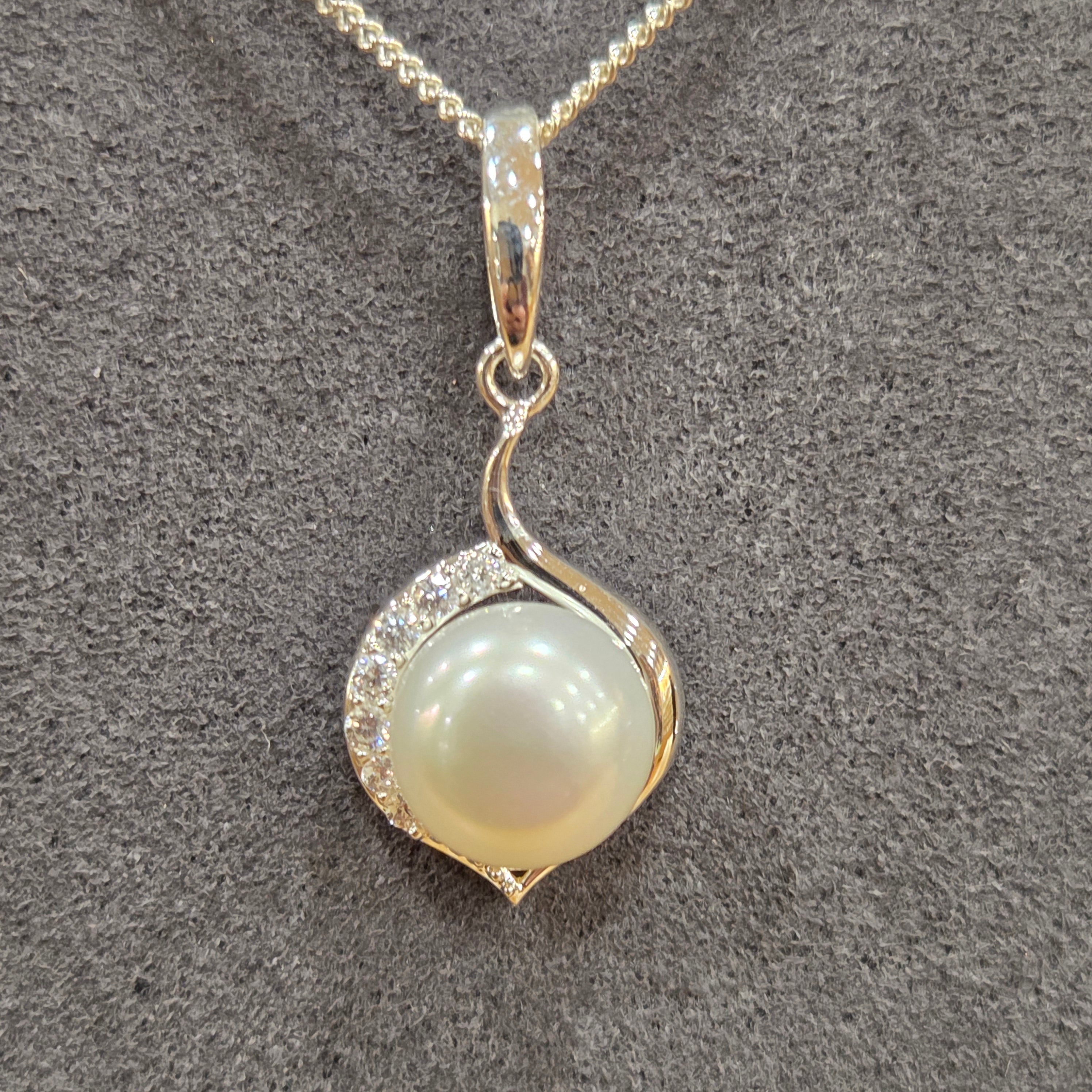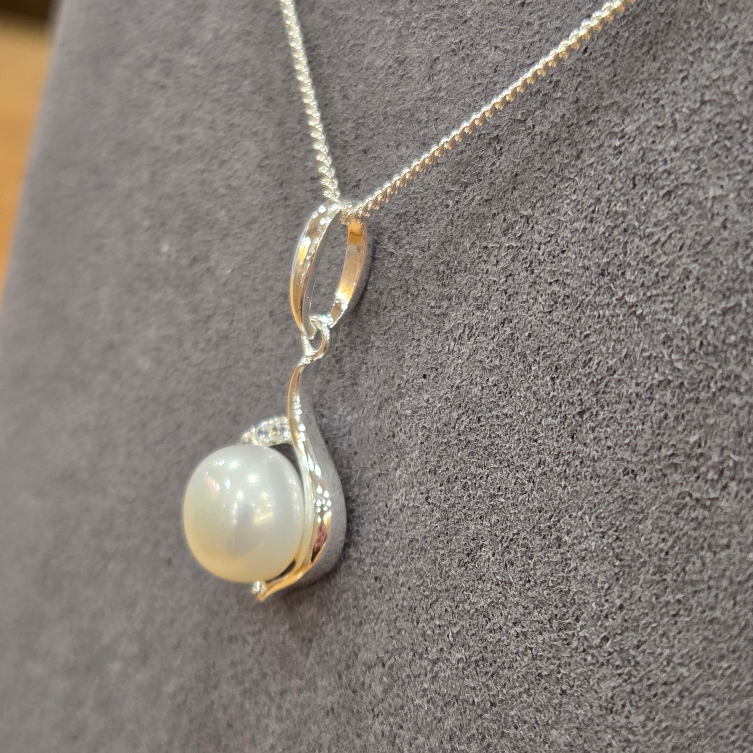 Elevate your everyday elegance with this stunning teardrop pendant, crafted from lustrous sterling silver and adorned with a luminous freshwater pearl. The sparkling cubic zirconia accents catch the light beautifully, creating a sophisticated piece that transitions effortlessly from day to night.  Pair with the matching drop earrings to finish the look.