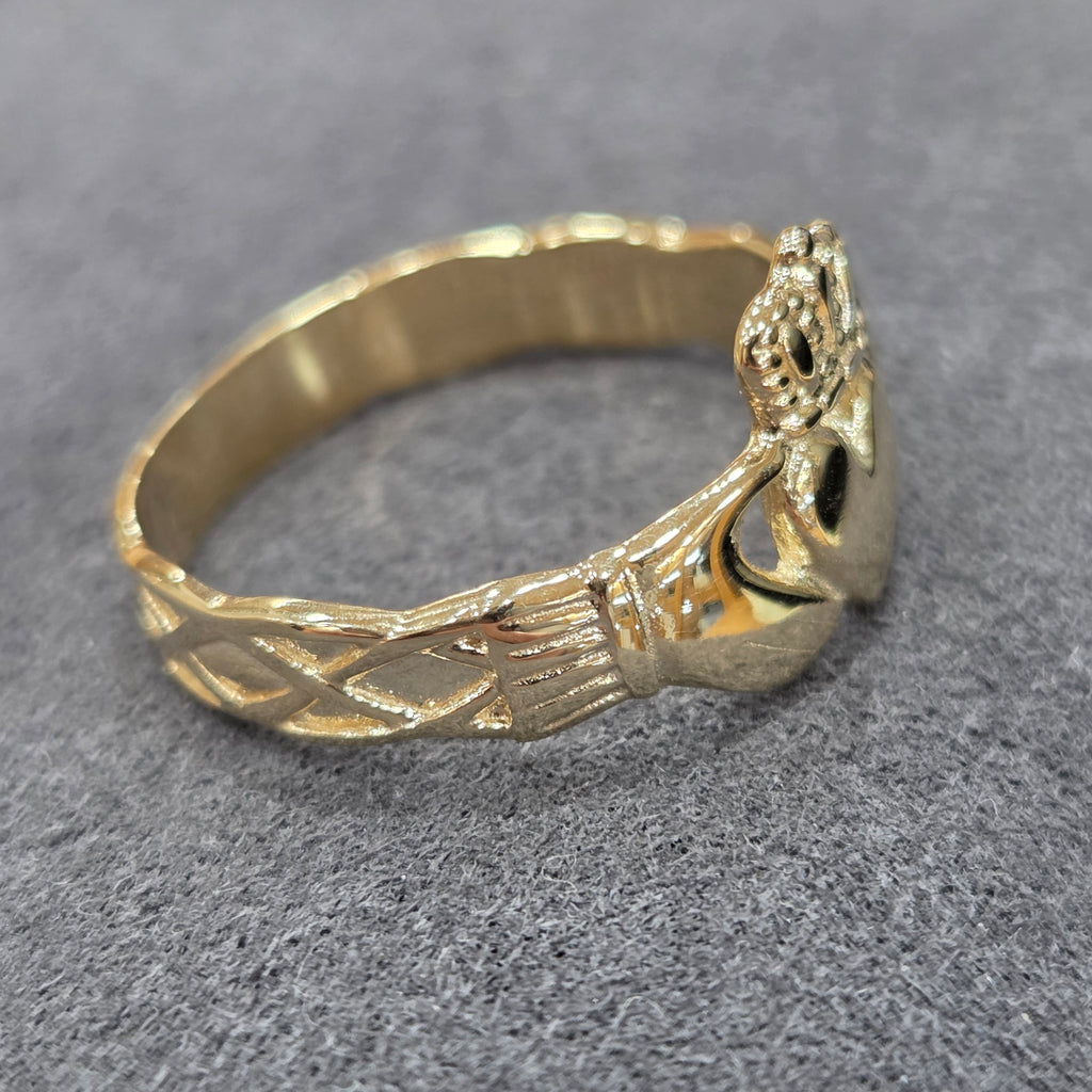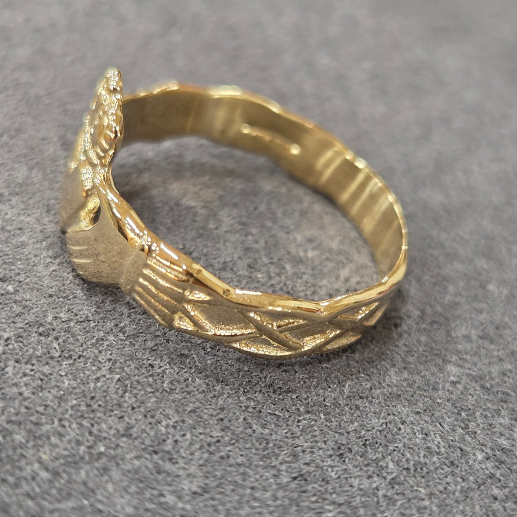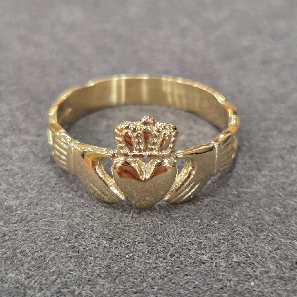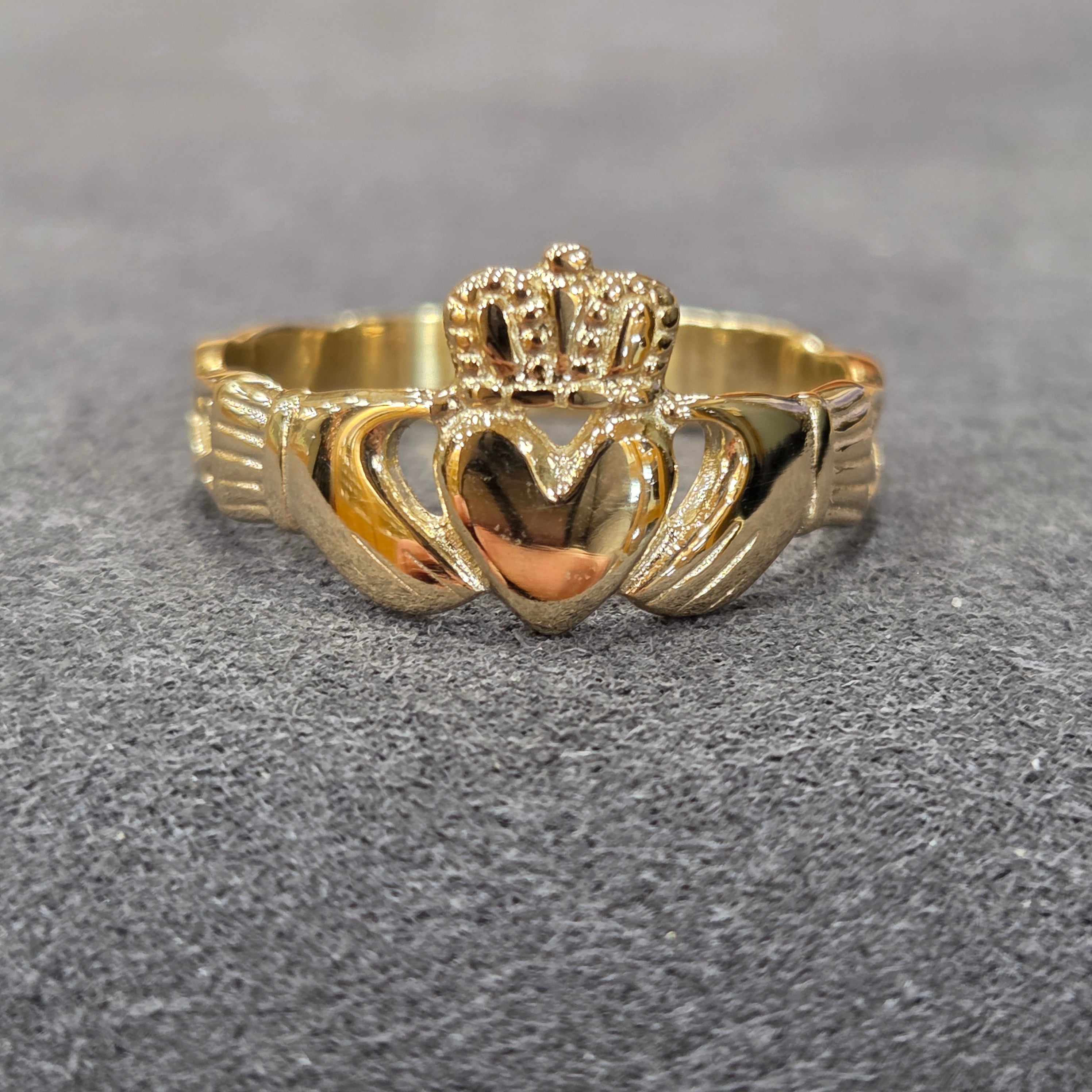 This timeless 9ct gold Claddagh ring celebrates the beautiful symbolism of love, loyalty, and friendship through its iconic design. The delicate crown, heart, and hands come together in a piece that honours Irish heritage while making a meaningful statement about the bonds that matter most. Perfect for marking special moments or wearing as a daily reminder of what truly counts.