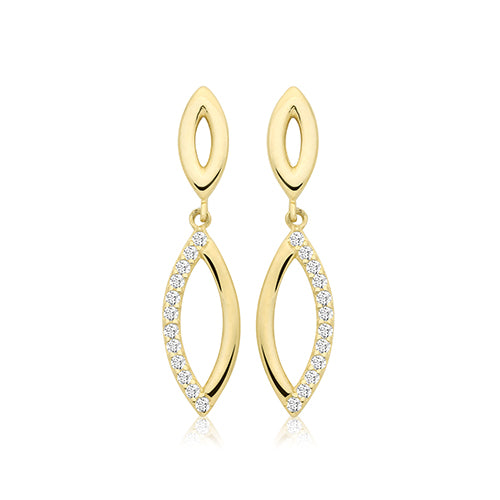 Elevate your everyday elegance with these stunning 9ct gold marquise drop earrings. Featuring an open, elongated design that flatters any face shape, they're adorned with sparkling cubic zirconia along the edges for a touch of refined glamour. The secure stud post fastening ensures they stay perfectly in place throughout your day, whether you're heading to the office or an evening occasion. A versatile investment piece that transitions seamlessly from casual to formal wear.