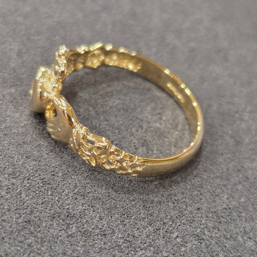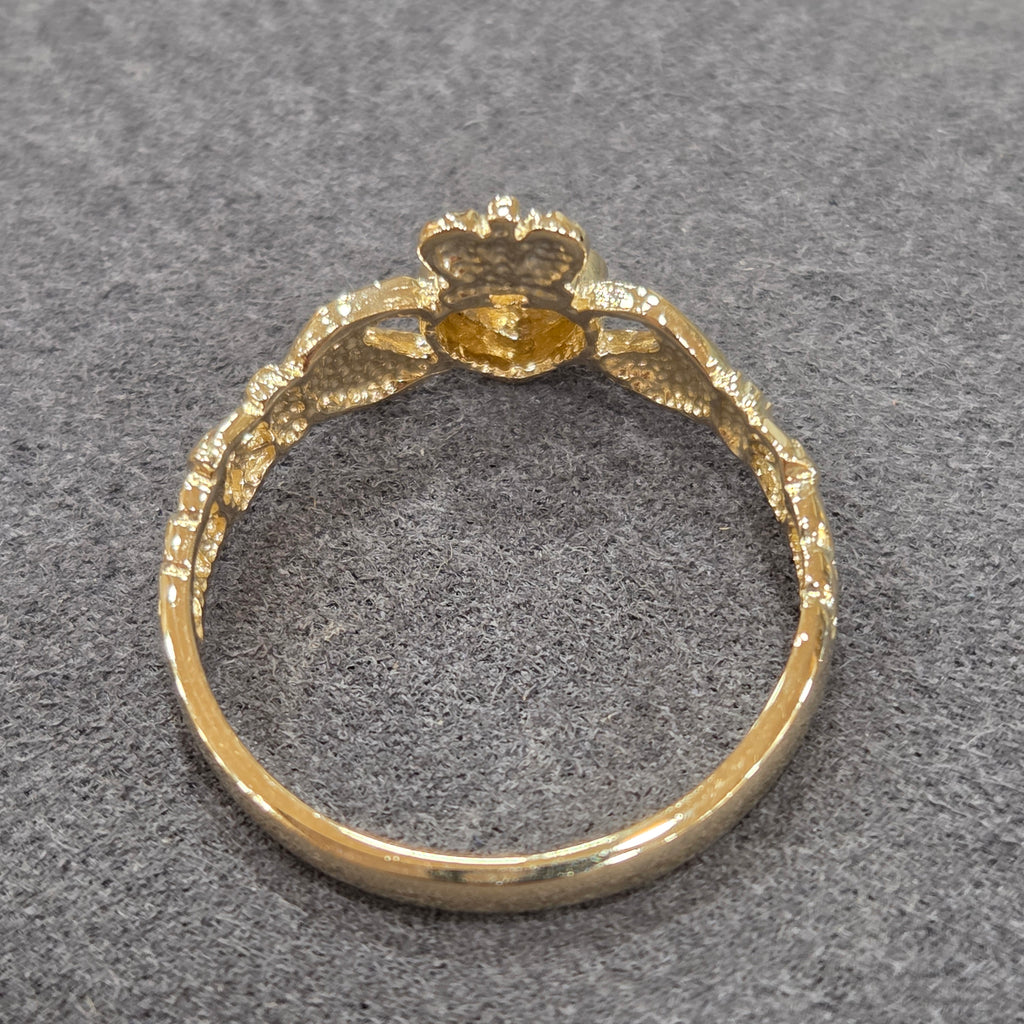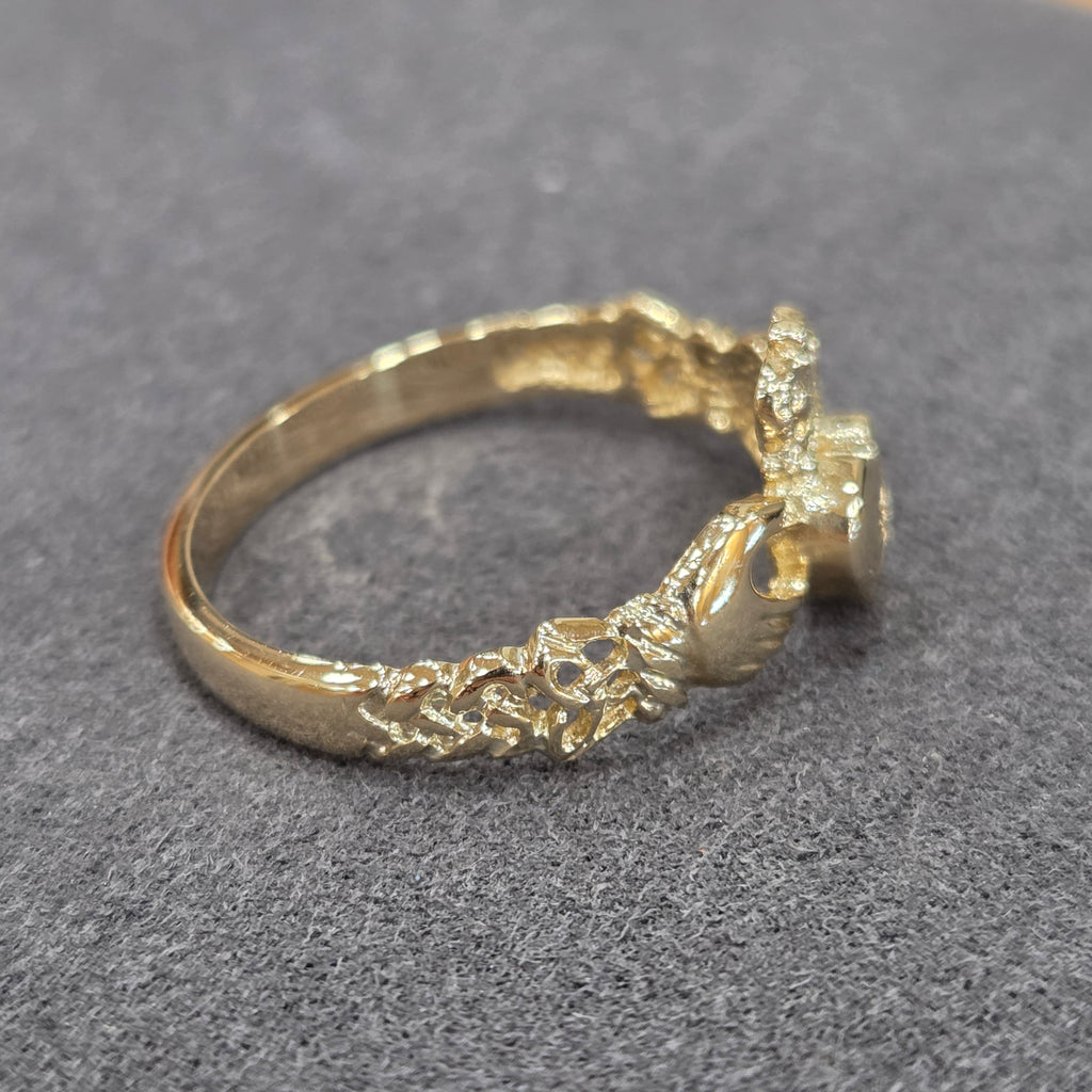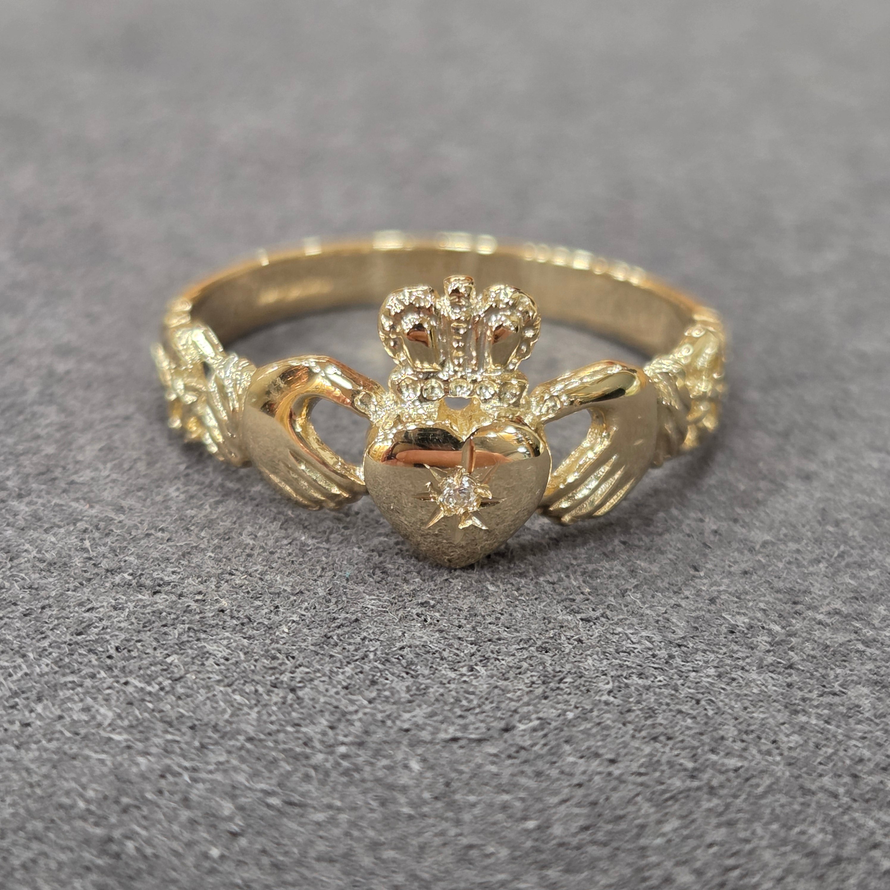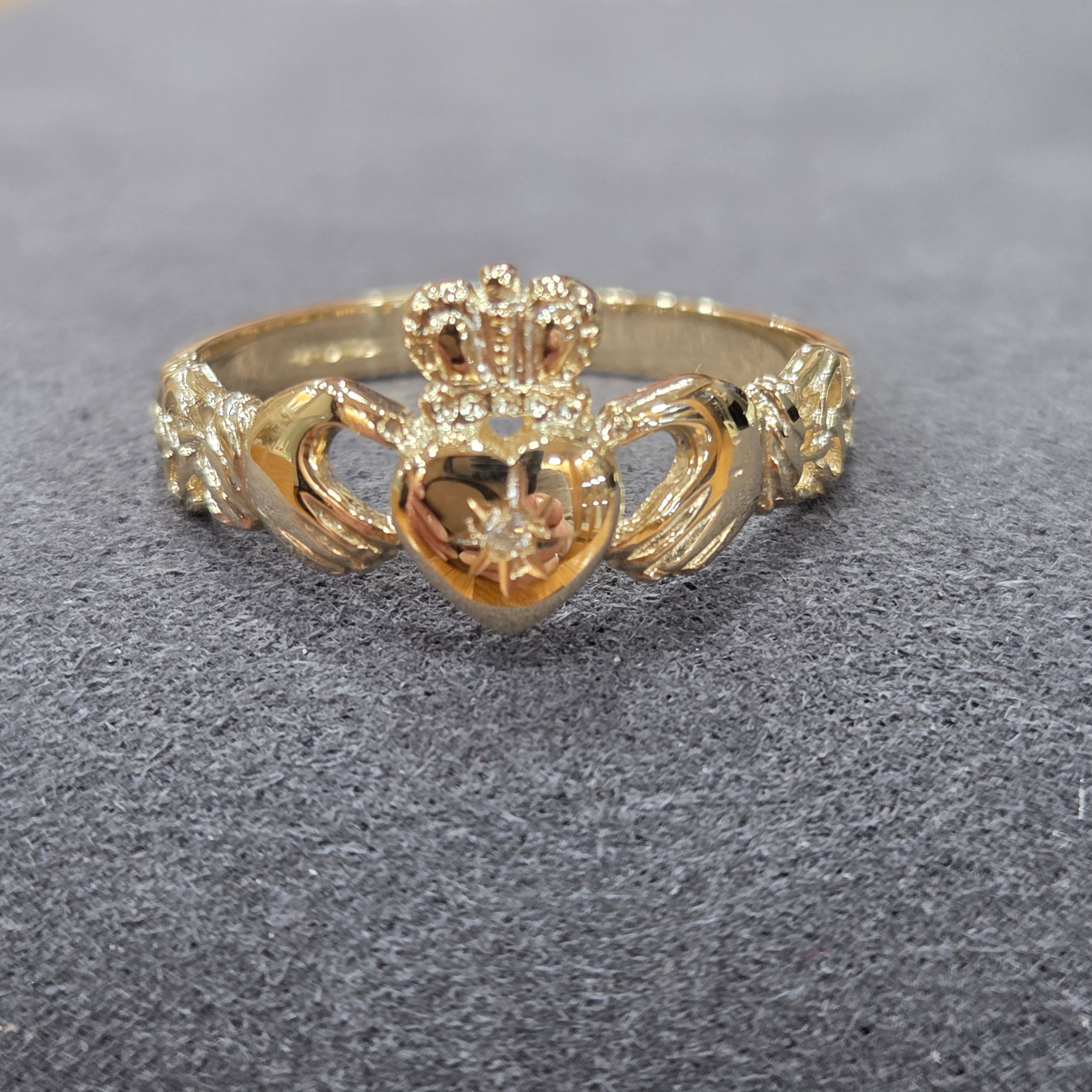 This stunning 9ct gold Claddagh ring captures the essence of timeless symbolism—where the heart speaks of love, the protective hands embody loyalty, and the crown celebrates friendship. A meaningful piece that tells your story with elegance and grace.