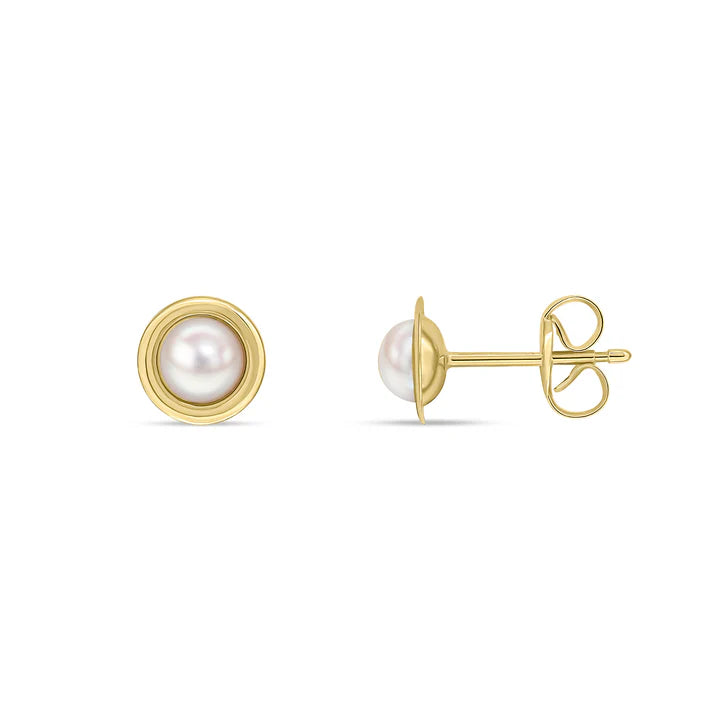 9ct Gold Freshwater Pearl Button Stud Earrings