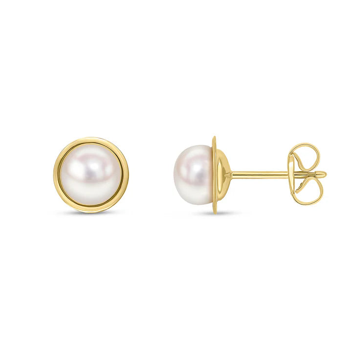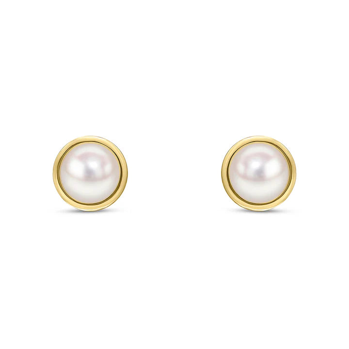 9ct Gold Freshwater Pearl Button Stud Earrings