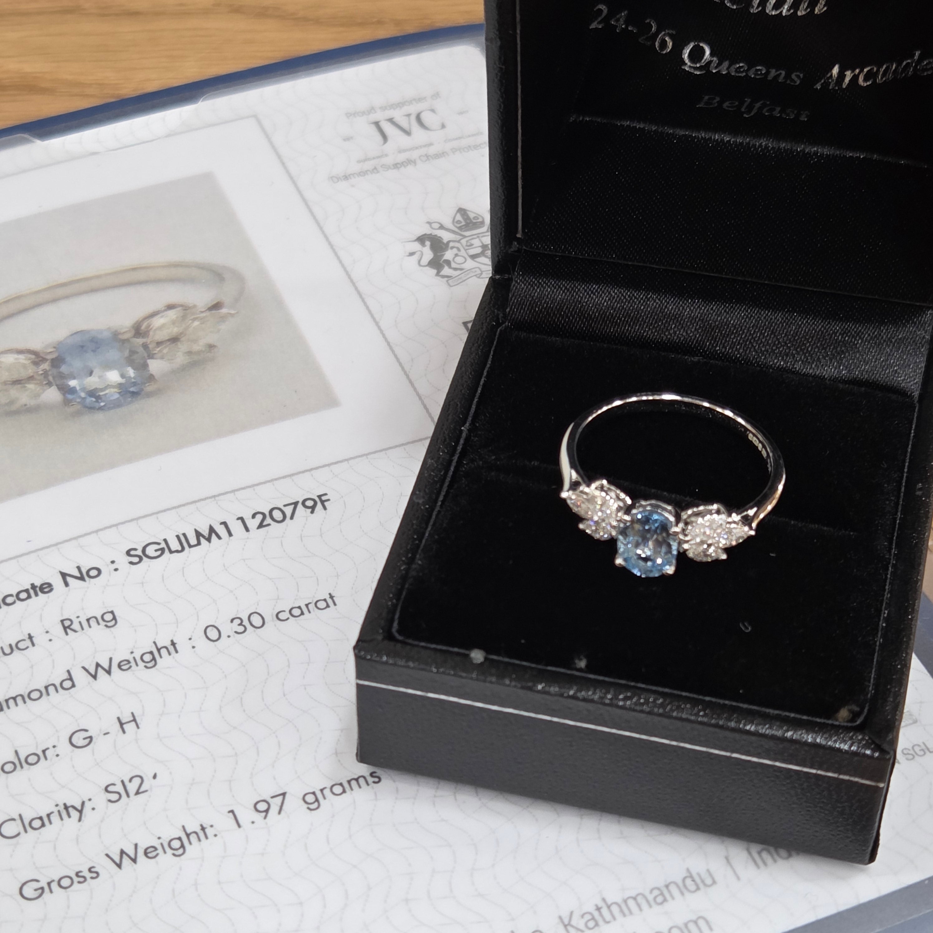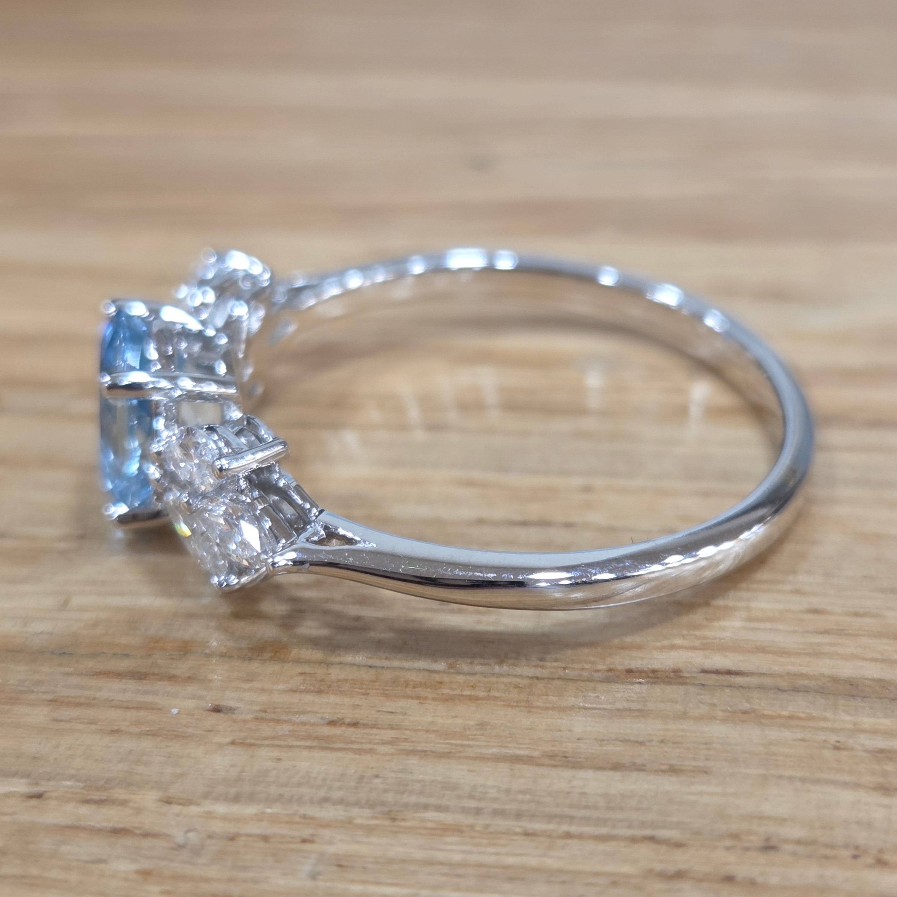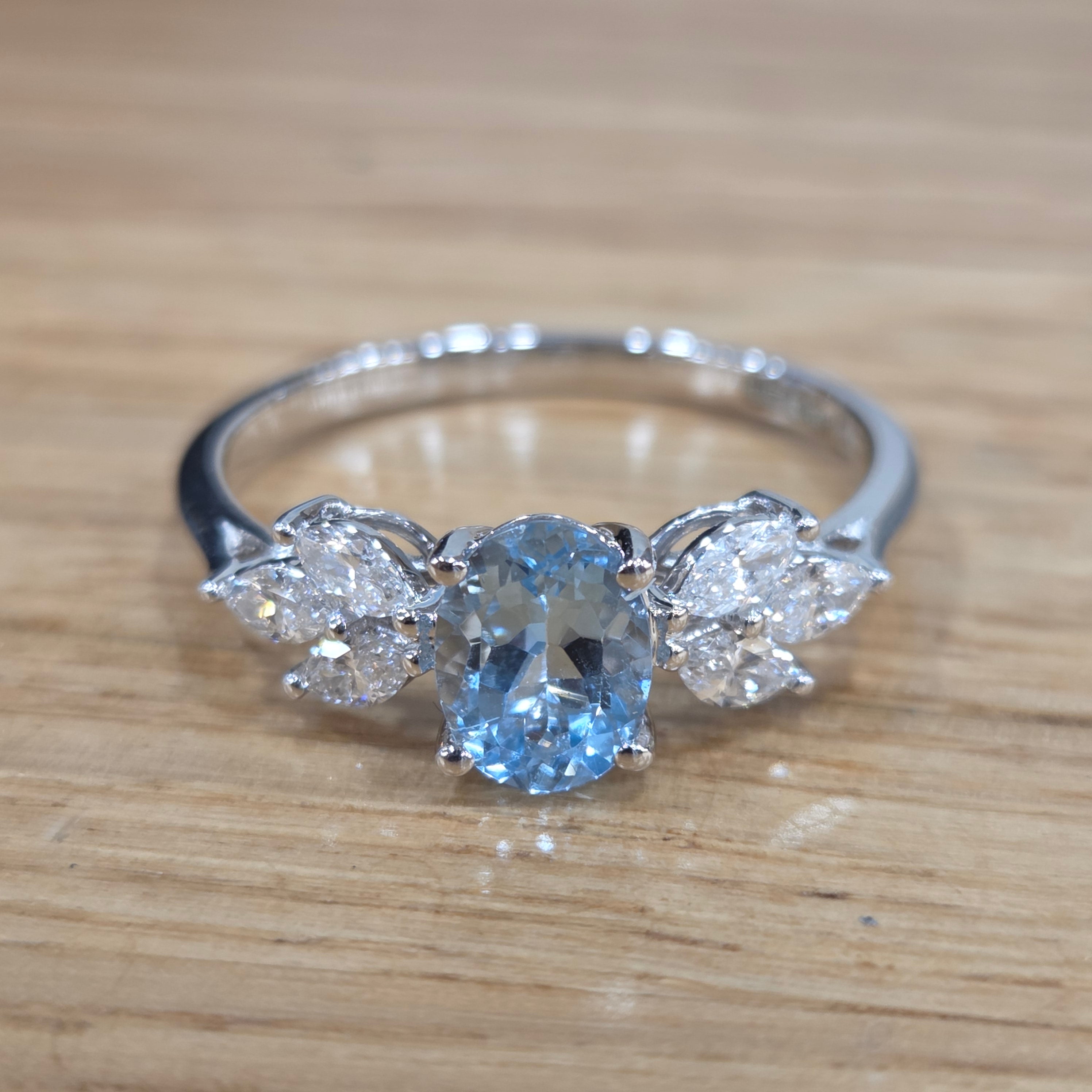 This exquisite 9ct white gold ring showcases a captivating oval aquamarine complemented by elegant marquise-cut diamonds, creating a truly breath-taking statement piece. Perfect for those seeking a distinctive and radiant design that celebrates timeless sophistication and natural beauty.