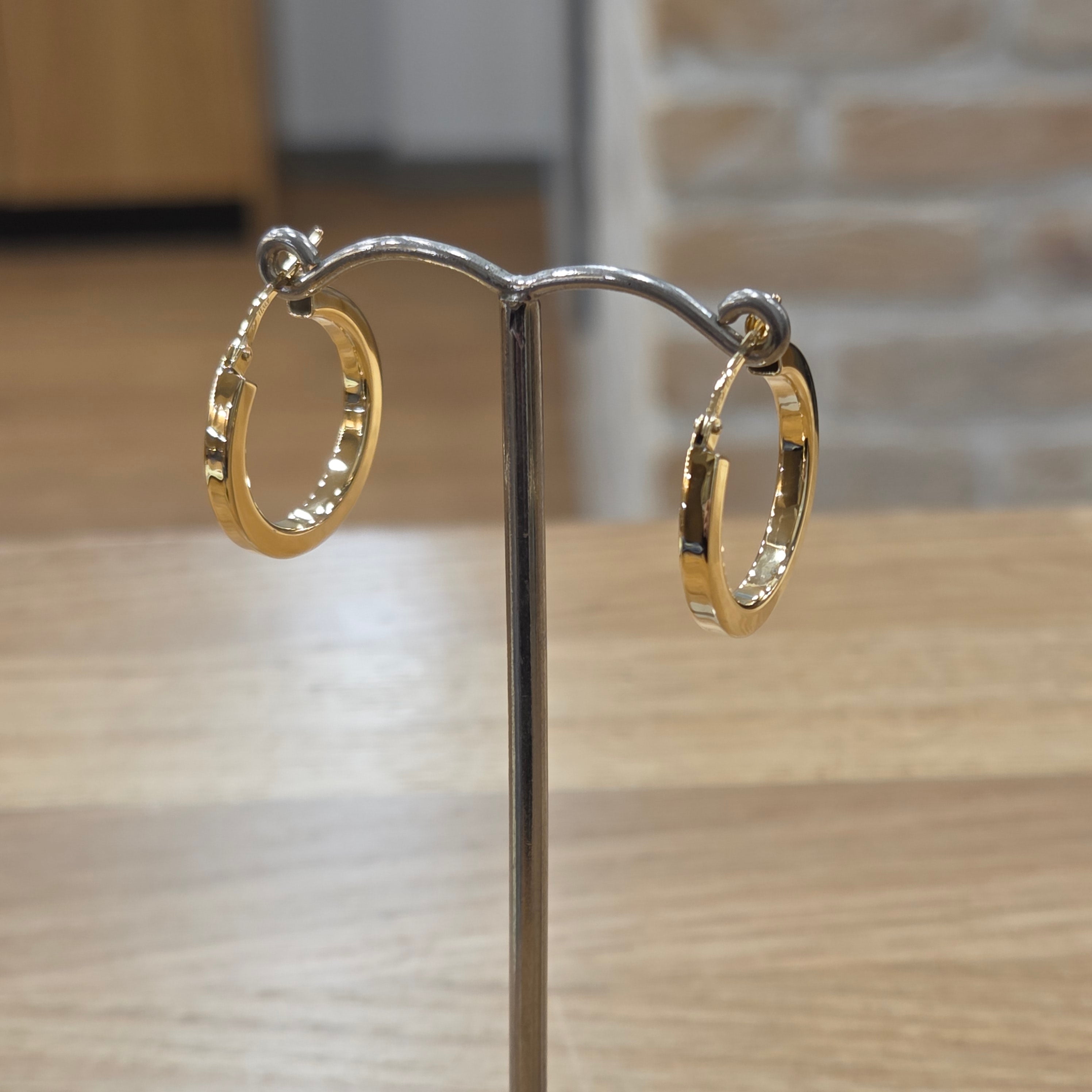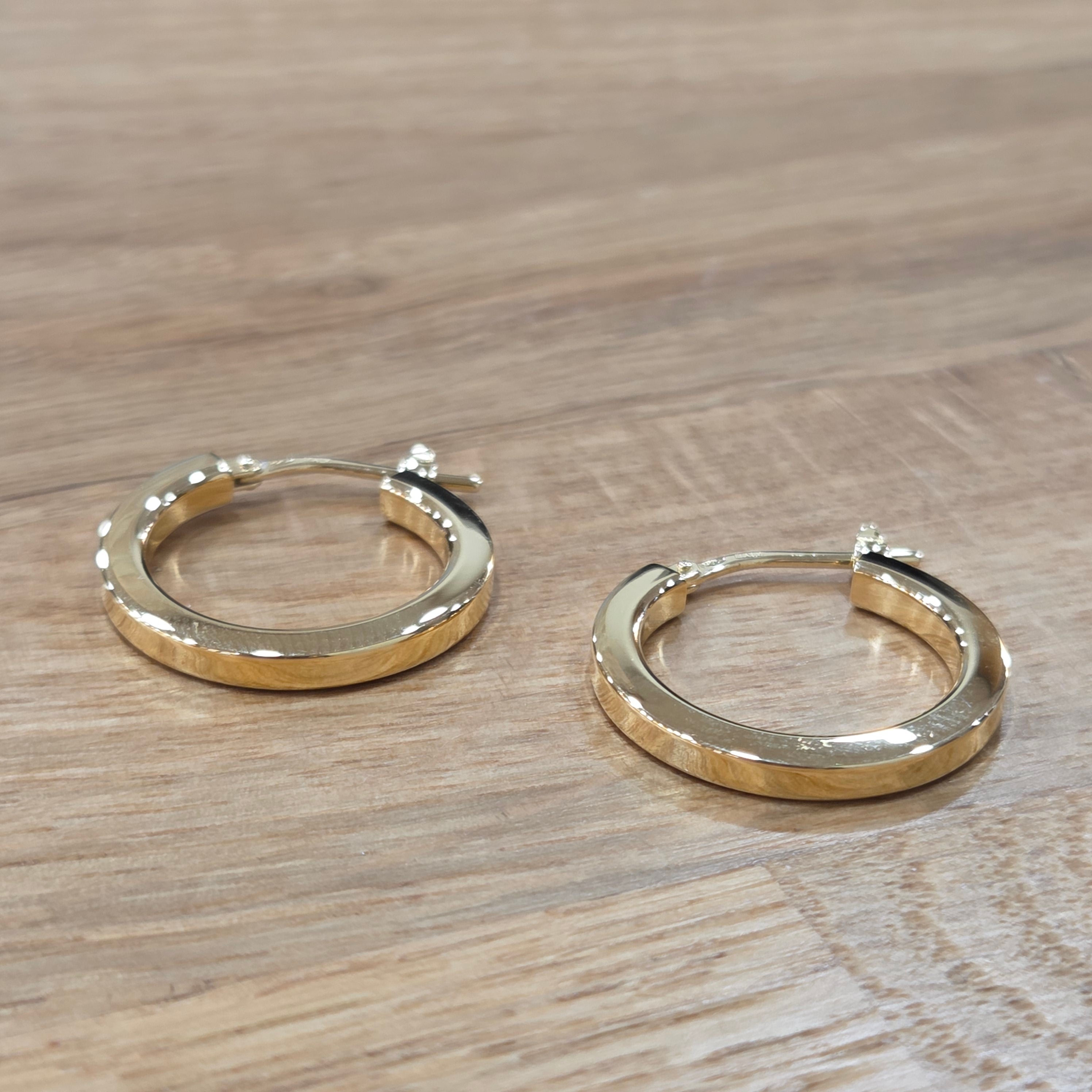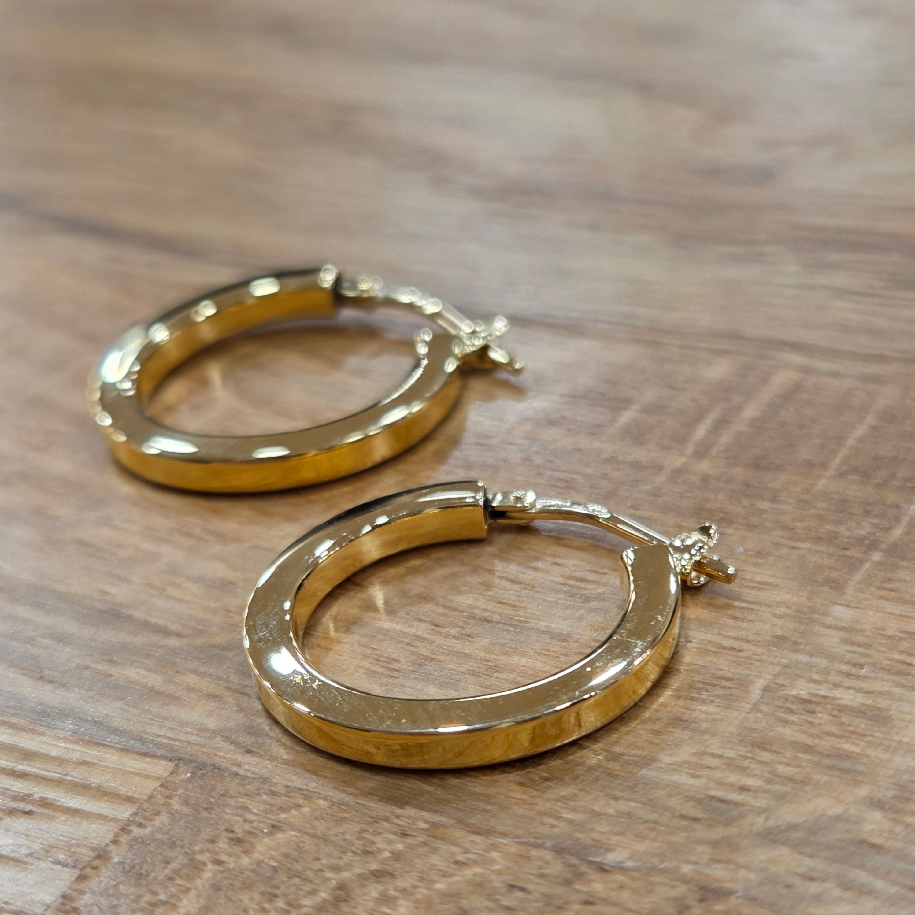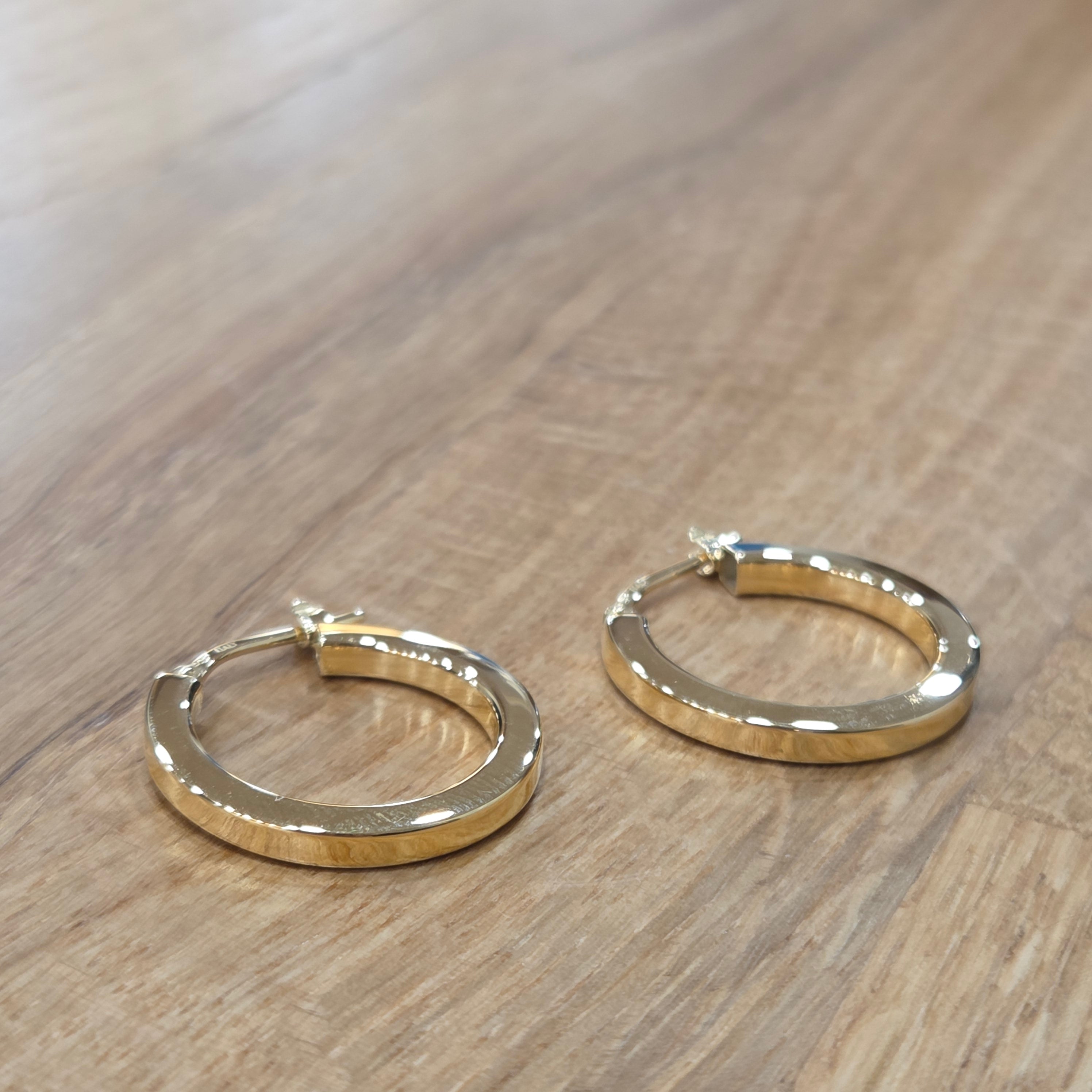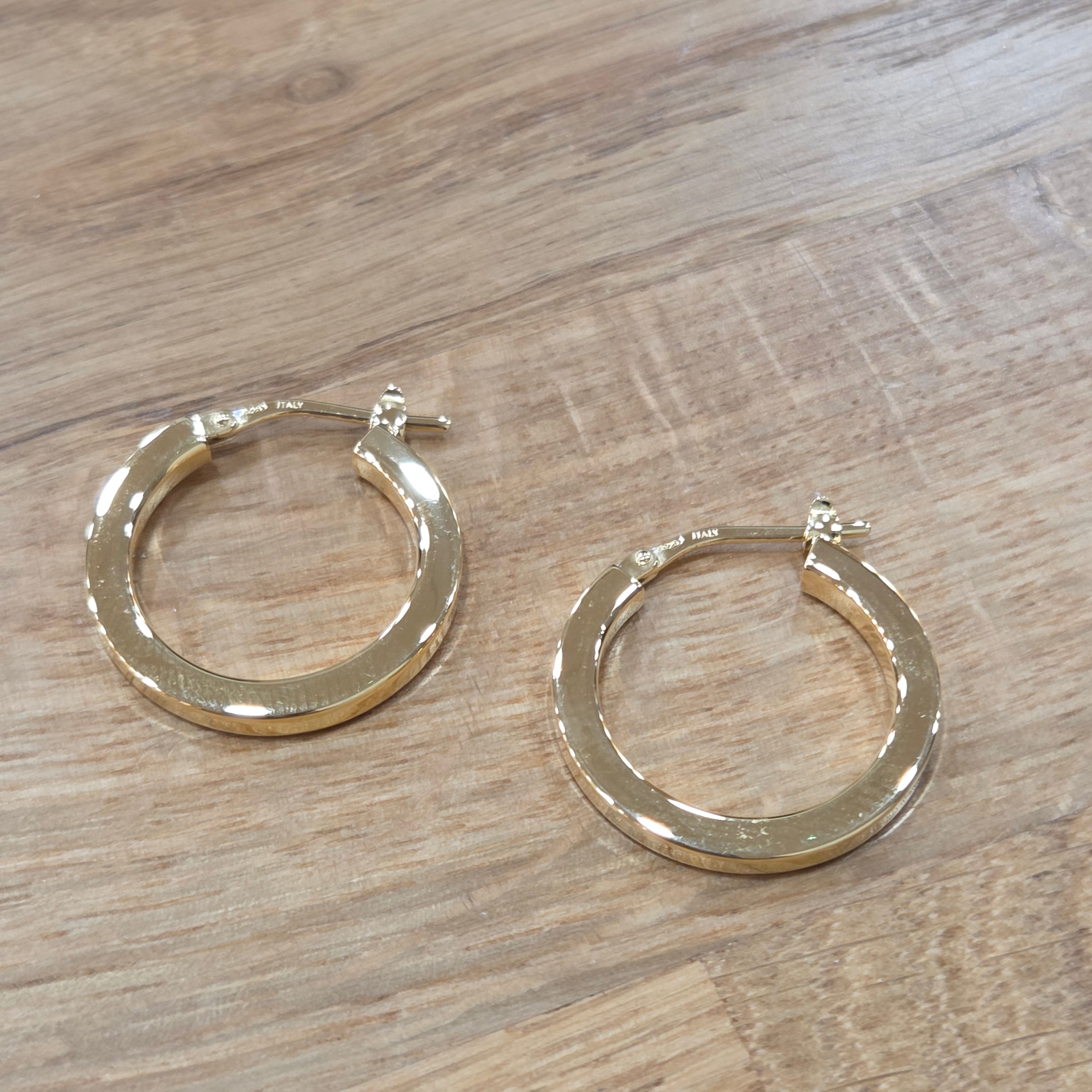 Discover the perfect everyday earrings with these delightful small hoops. Featuring a sleek flat wire design with radiant gold plating over a silver base, they bring warmth and refinement to your jewellery collection. Whether you're dressing up or keeping it casual, these versatile hoops deliver timeless appeal with a modern edge that complements any style beautifully.