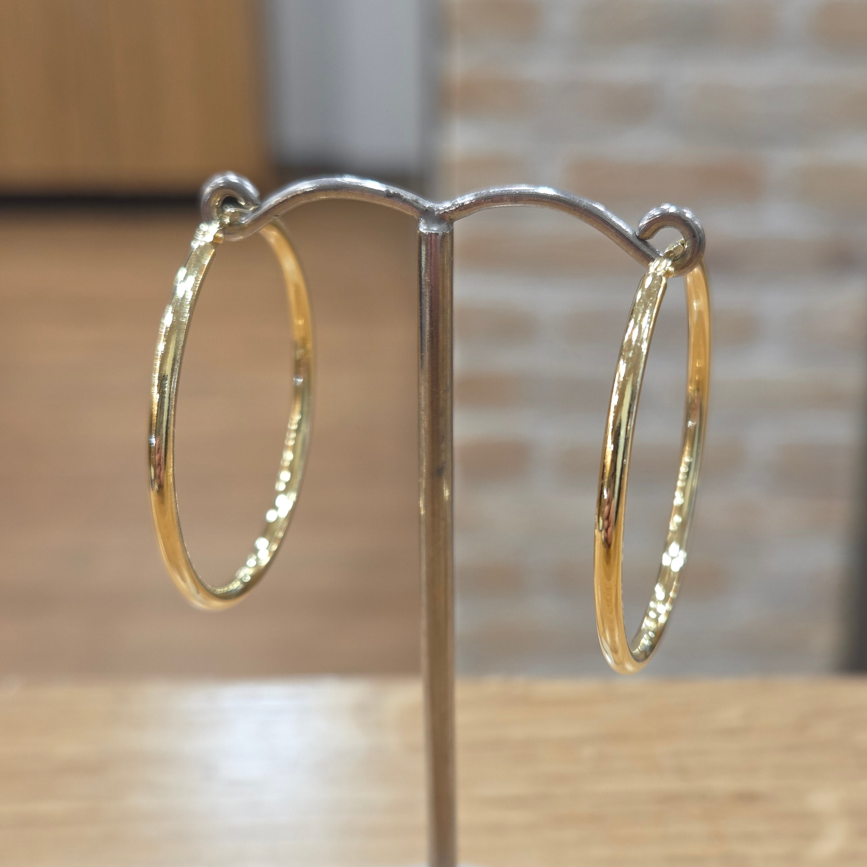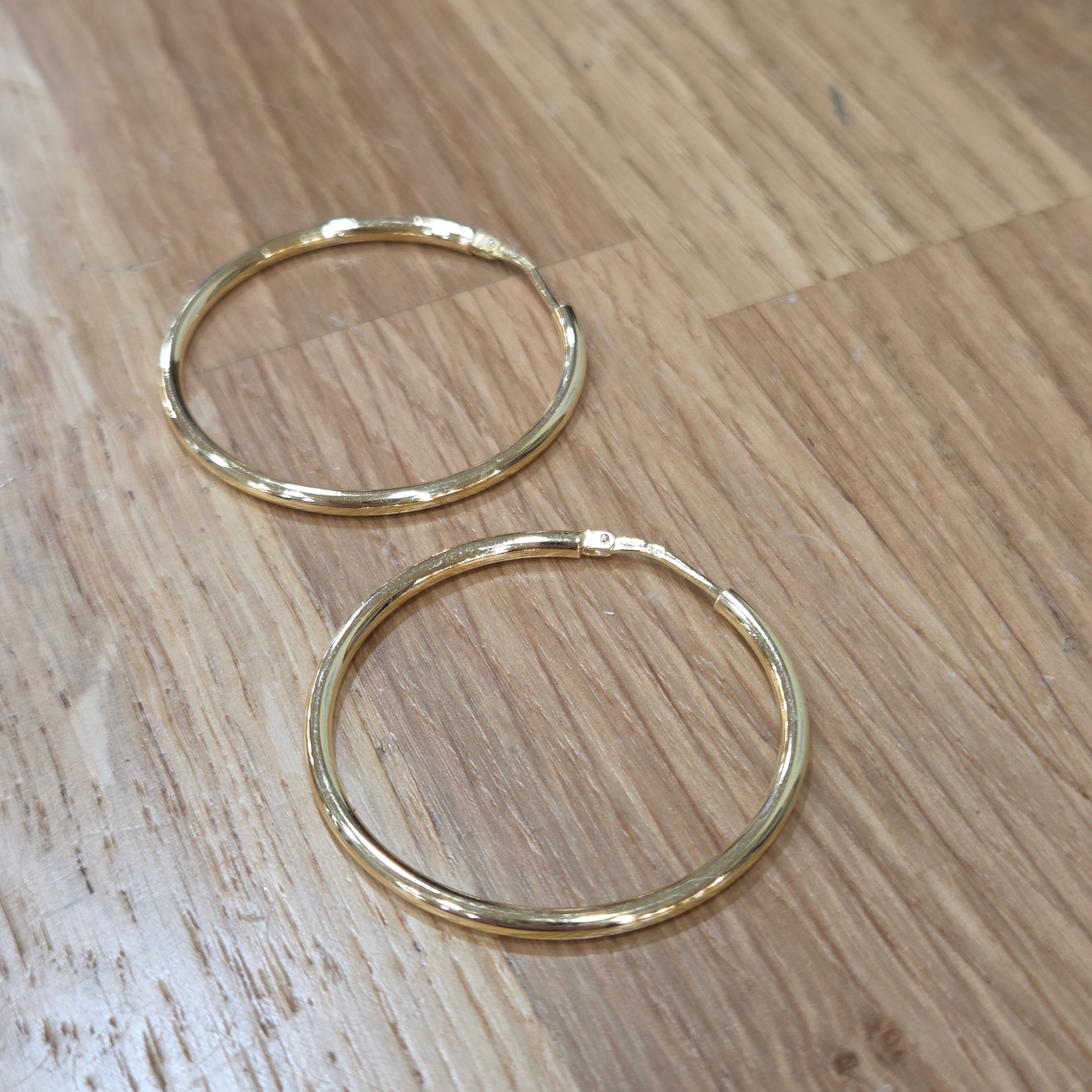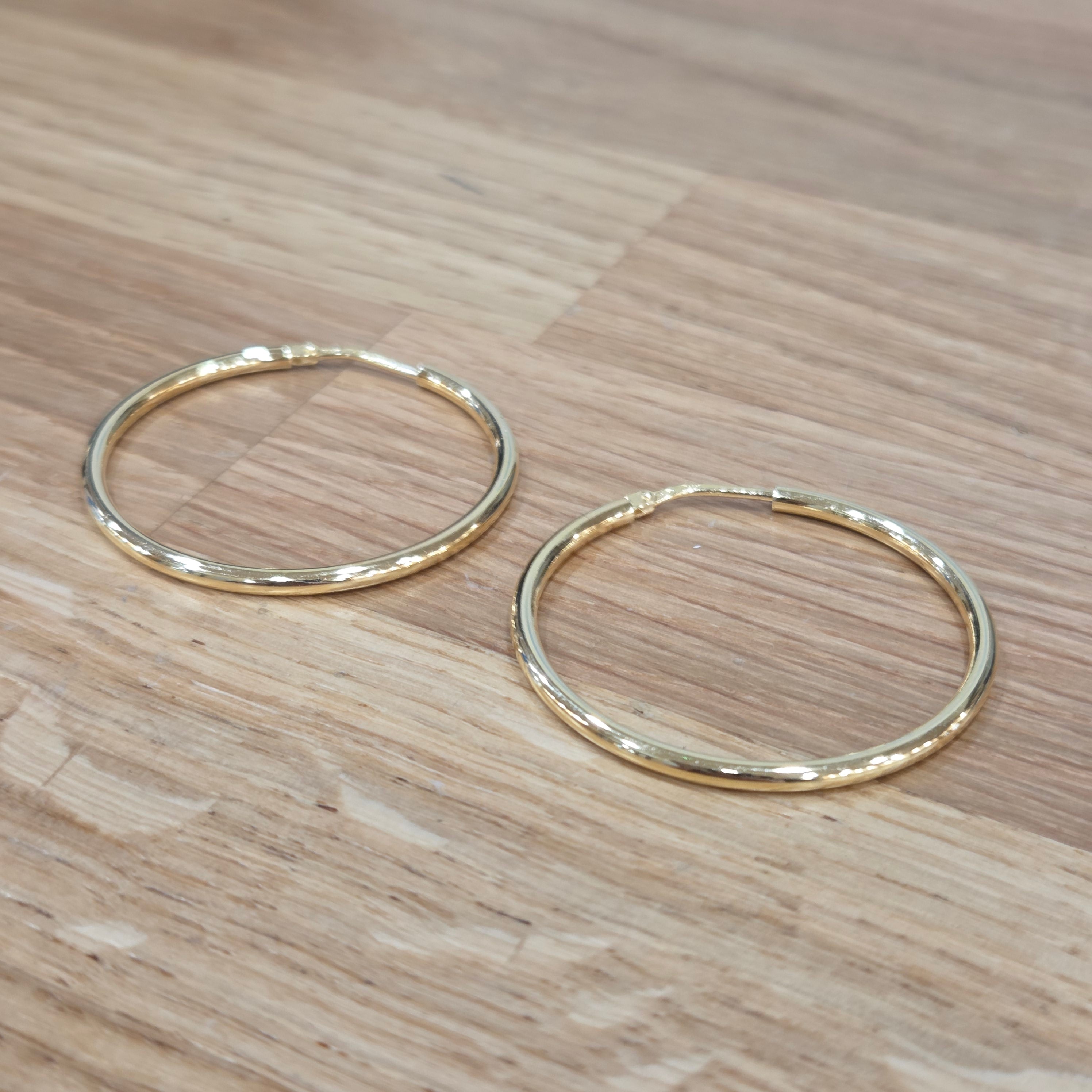 Discover the perfect balance of delicate design and lasting quality with these medium wire hoops. Featuring a lustrous gold-plated coating over sterling silver, they offer both beauty and durability for everyday wear. These versatile hoops complement any style, whether you're dressing up or keeping it casual. A radiant addition to your jewellery wardrobe that you'll reach for again and again.