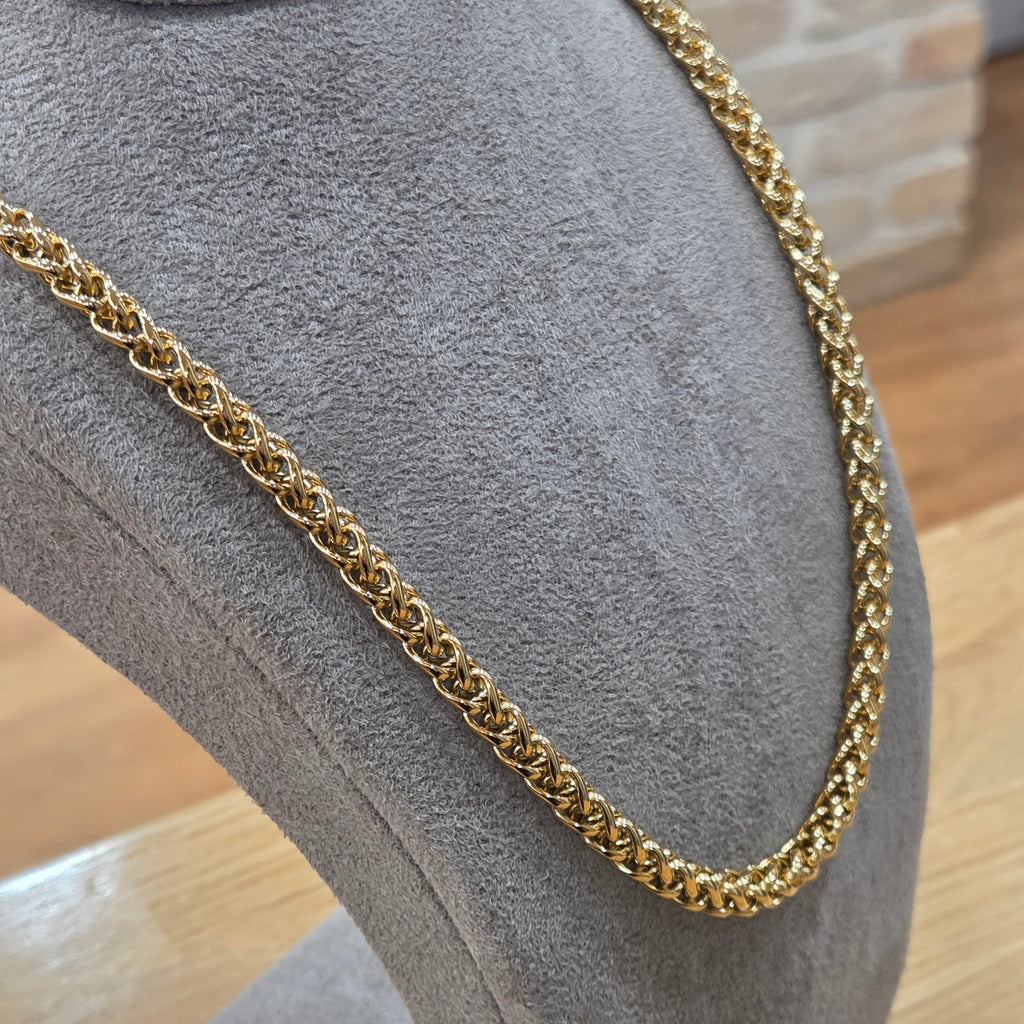 Make a statement with this contemporary men's necklace, featuring premium stainless steel enhanced by rich gold IP plating that delivers timeless elegance. The perfectly proportioned 6mm width and 50cm length strike an ideal balance between presence and wearability. Maximize your impact by combining it with the matching bracelet to create a coordinated look that showcases your discerning style.