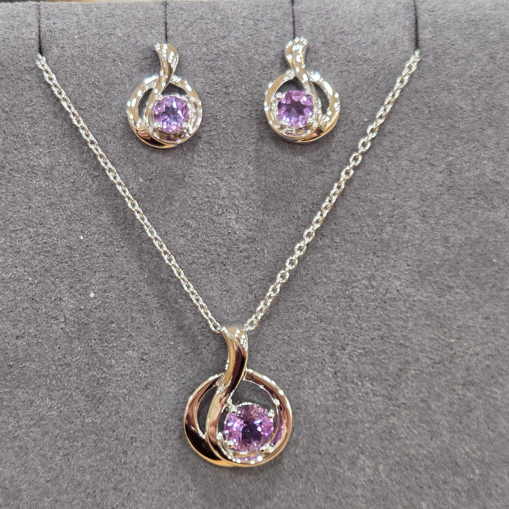 Elevate your style with this sterling silver necklace featuring a sleek circular design and a dazzling brilliant cut amethyst stone. The rhodium-plated finish adds lasting shine and durability. With a 16" chain plus a 1" extender, it offers a perfect fit for any neckline. Complete your look with the matching stud earrings for a coordinated, elegant ensemble.