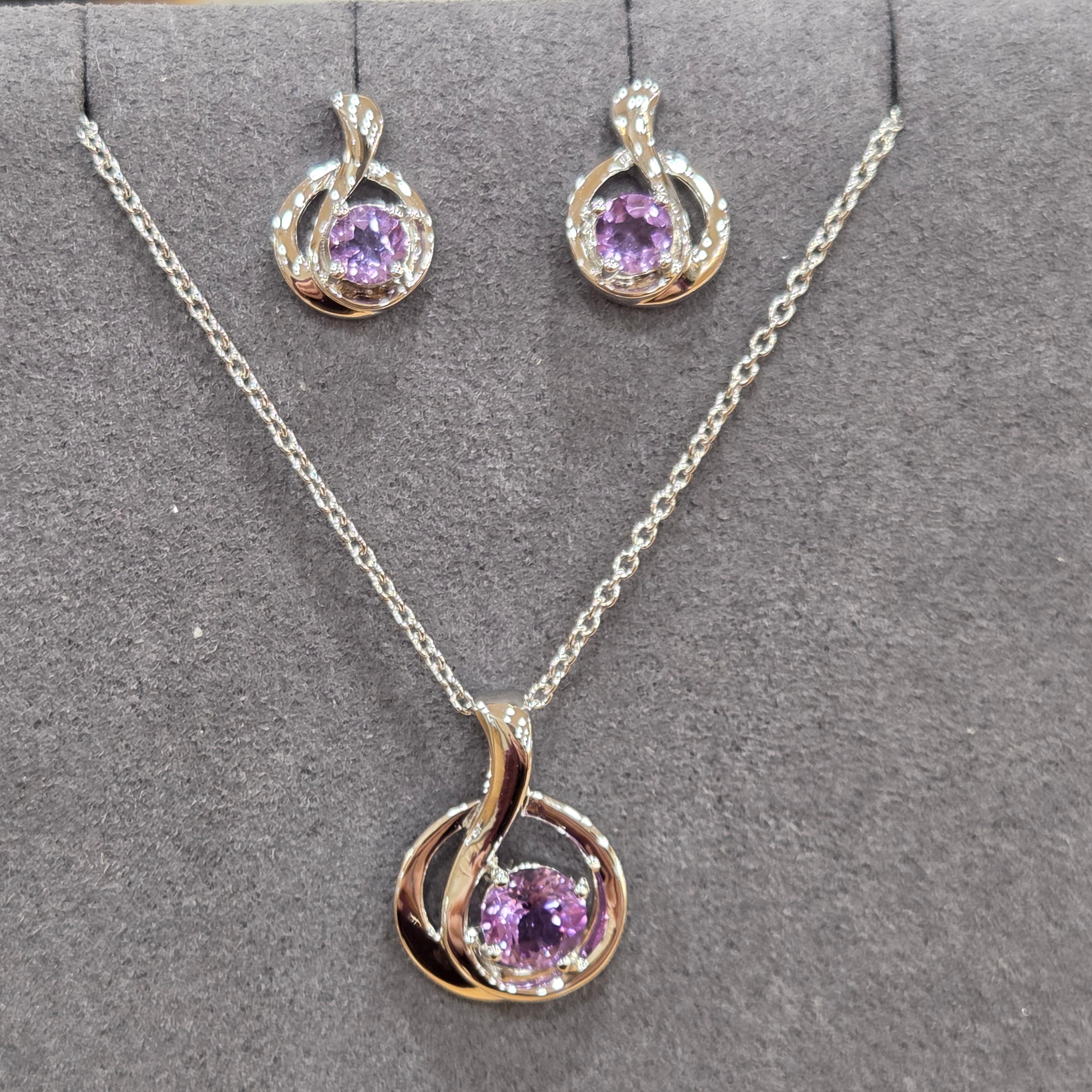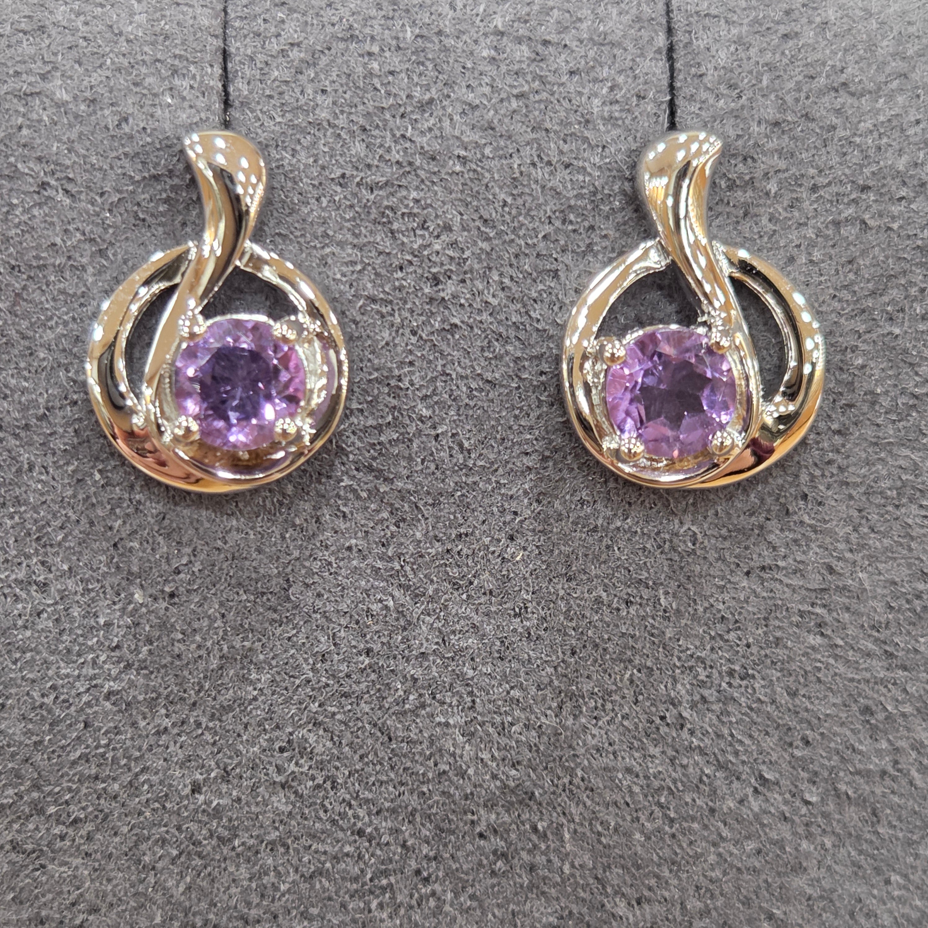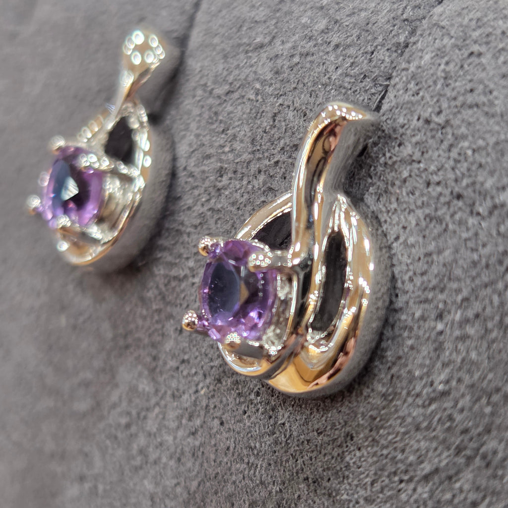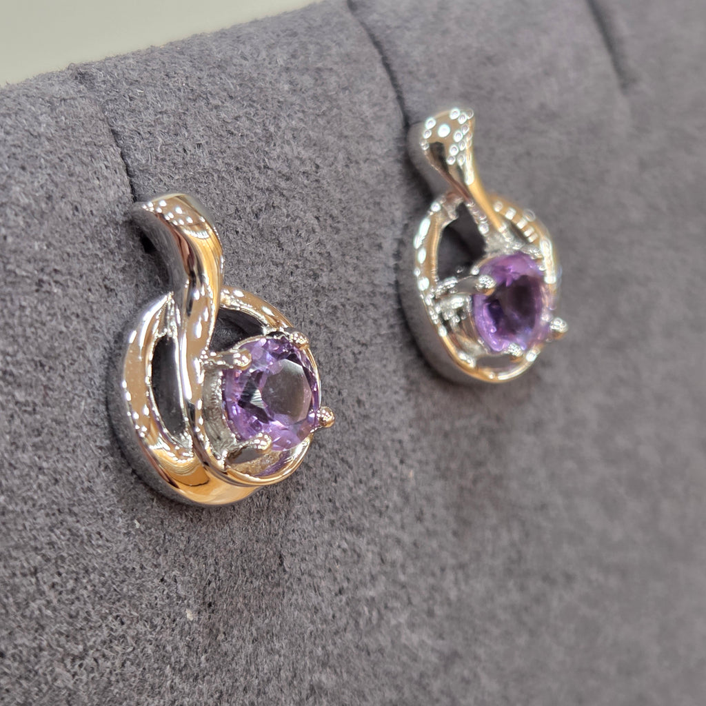 Elevate your elegance with these Silver & Amethyst Stud Earrings, crafted from sterling silver with a lustrous rhodium-plated finish for lasting shine and durability. The brilliant cut amethyst stones catch the light beautifully, adding a touch of vibrant sophistication to any outfit. Complete your look with the matching pendant available, designed to perfectly complement these earrings for a stunning coordinated set. Perfect for special occasions or everyday glamour.