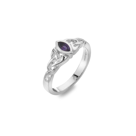 Embrace timeless elegance with this stunning sterling silver trinity knot ring, where Celtic tradition meets contemporary sparkle. The intricate trinity knot design symbolises eternal connection, while a radiant marquise cut amethyst takes centre stage, adding a touch of regal purple to your jewellery collection. Crafted from quality sterling silver, this piece seamlessly transitions from everyday wear to special occasions, making it a versatile treasure you'll reach for again and again. A beautiful reminder that some designs truly are forever.