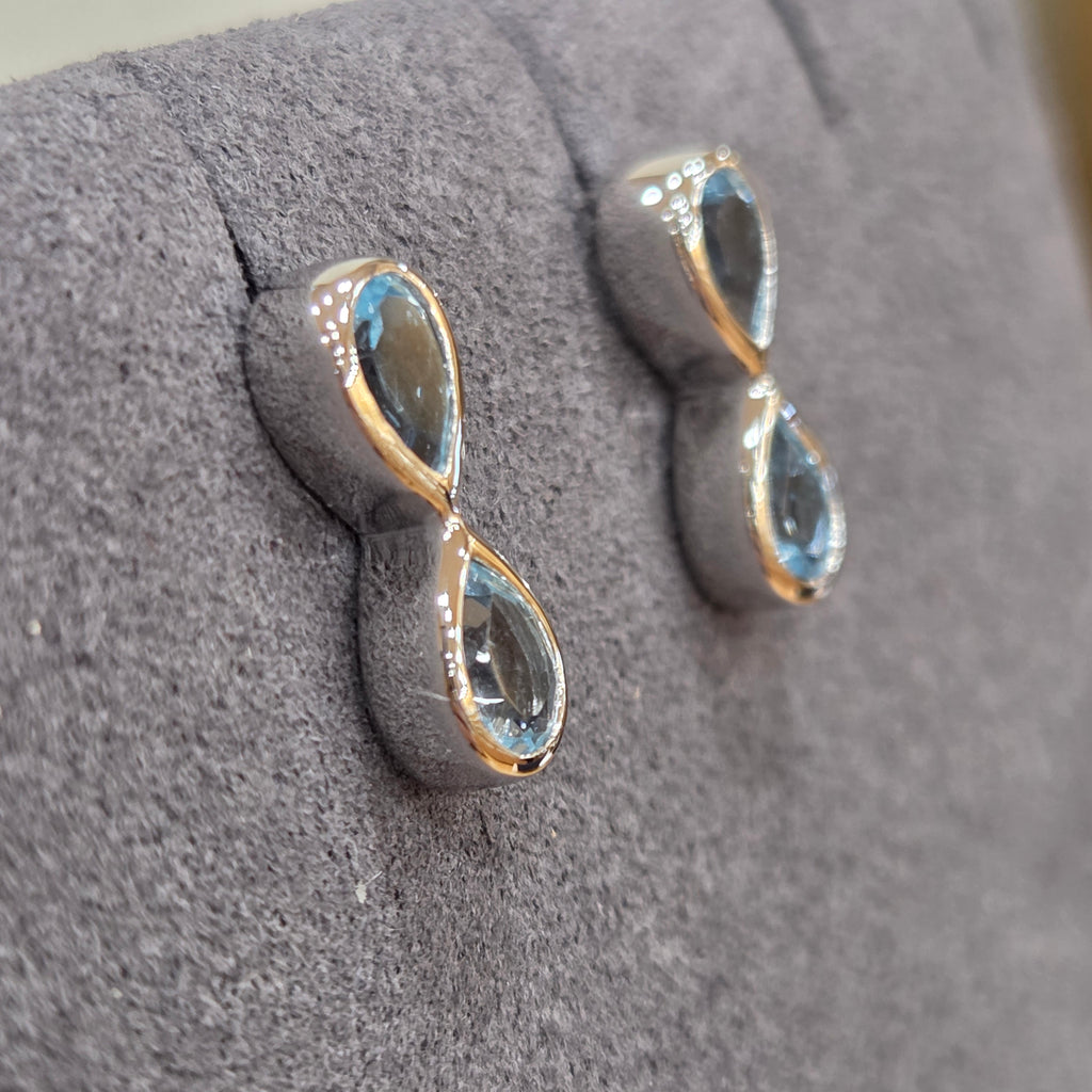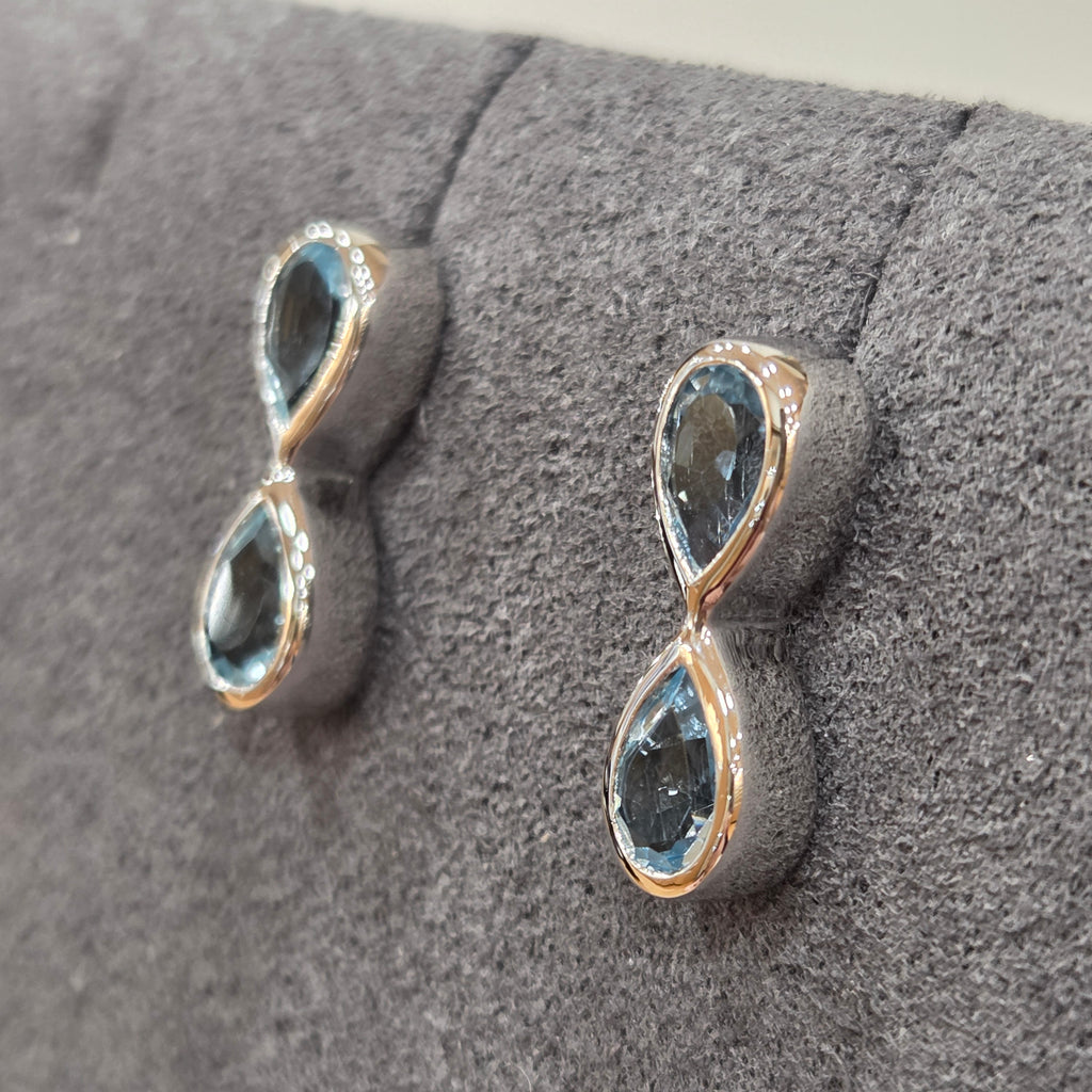 These sterling silver stud earrings feature elegant teardrop-shaped blue topaz stones. Pair them with the matching pendant to complete a beautifully coordinated ensemble.