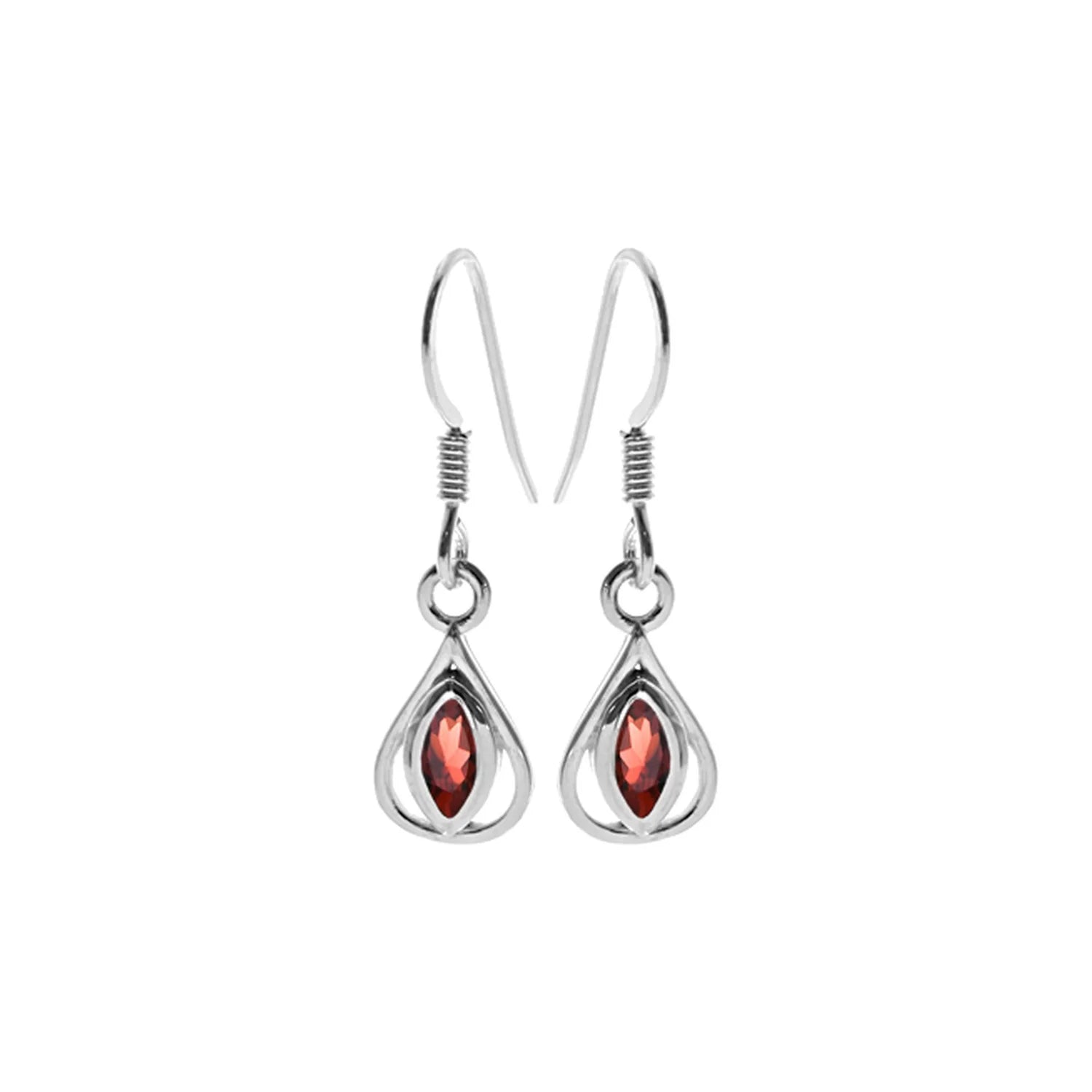 Elevate your everyday elegance with these stunning marquis garnet earrings, beautifully framed by a delicate teardrop surround in gleaming silver. Perfect worn alone or paired with the matching pendant for a coordinated, polished finish that radiates timeless sophistication.