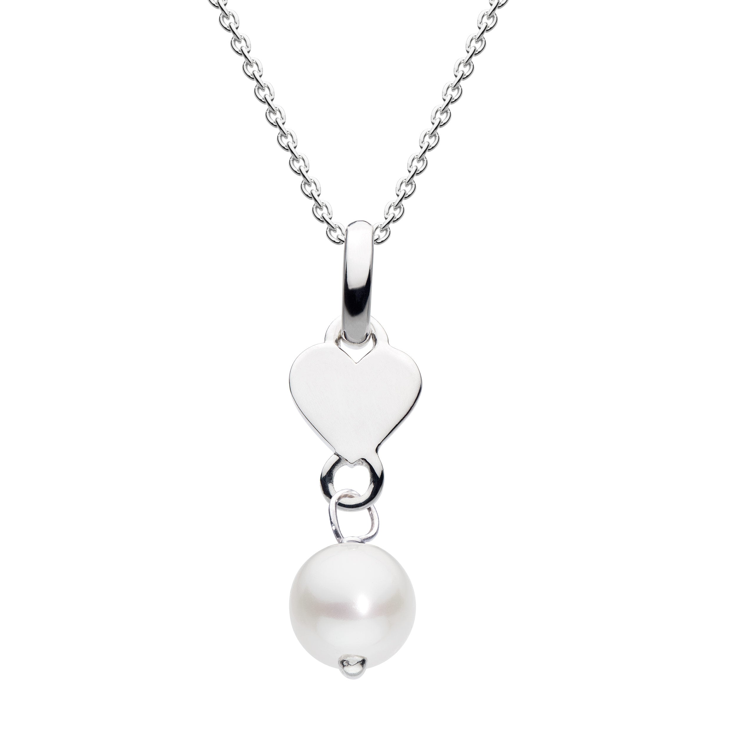 Sterling silver heat cham pendant with a simple round white freshwater pearl drop.