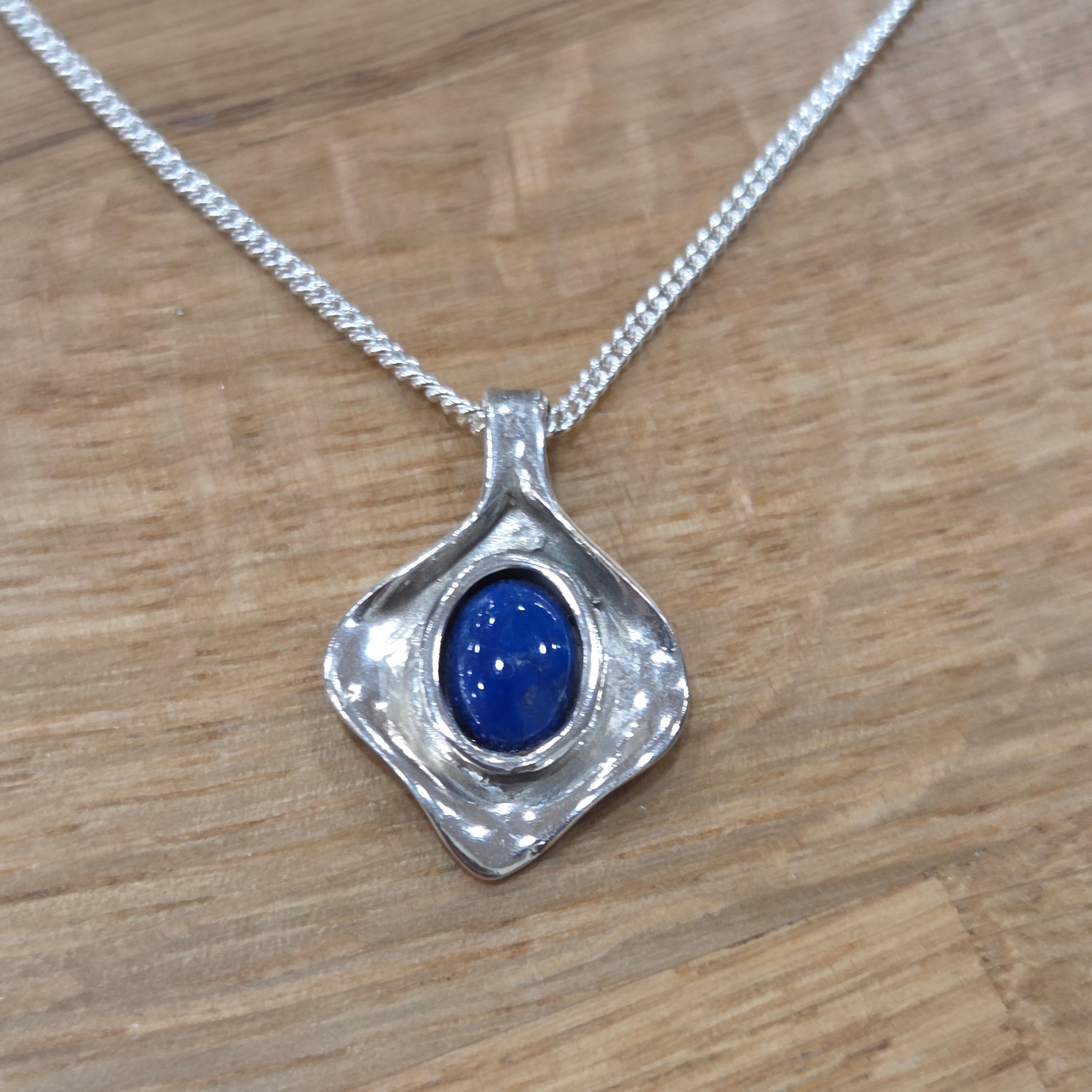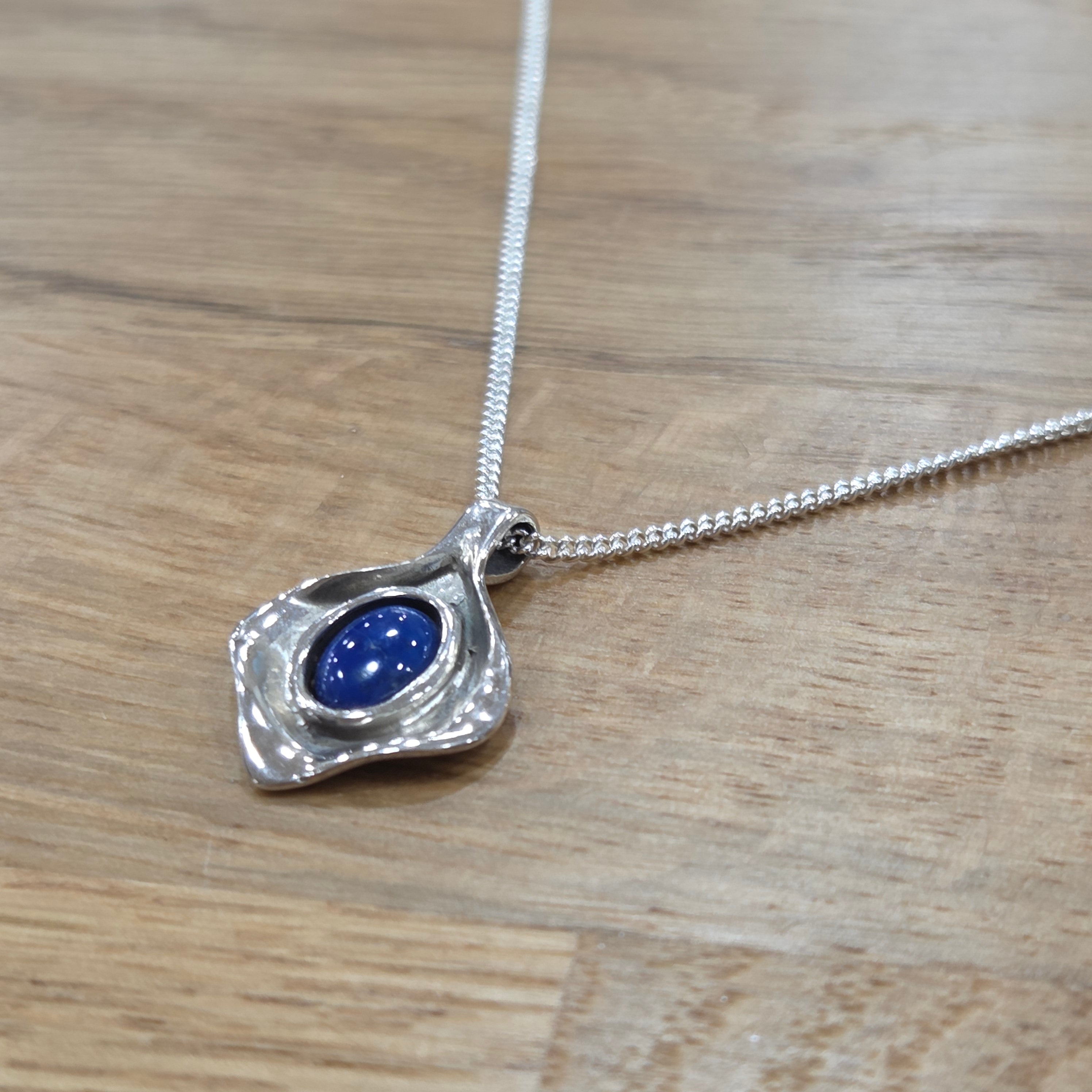 Embrace timeless elegance with this captivating lapis lazuli pendant, beautifully crafted in sterling silver with classic vintage-inspired detailing. The rich, deep blue stone brings a touch of sophistication to any collection, making it a versatile piece for both everyday wear and special occasions.