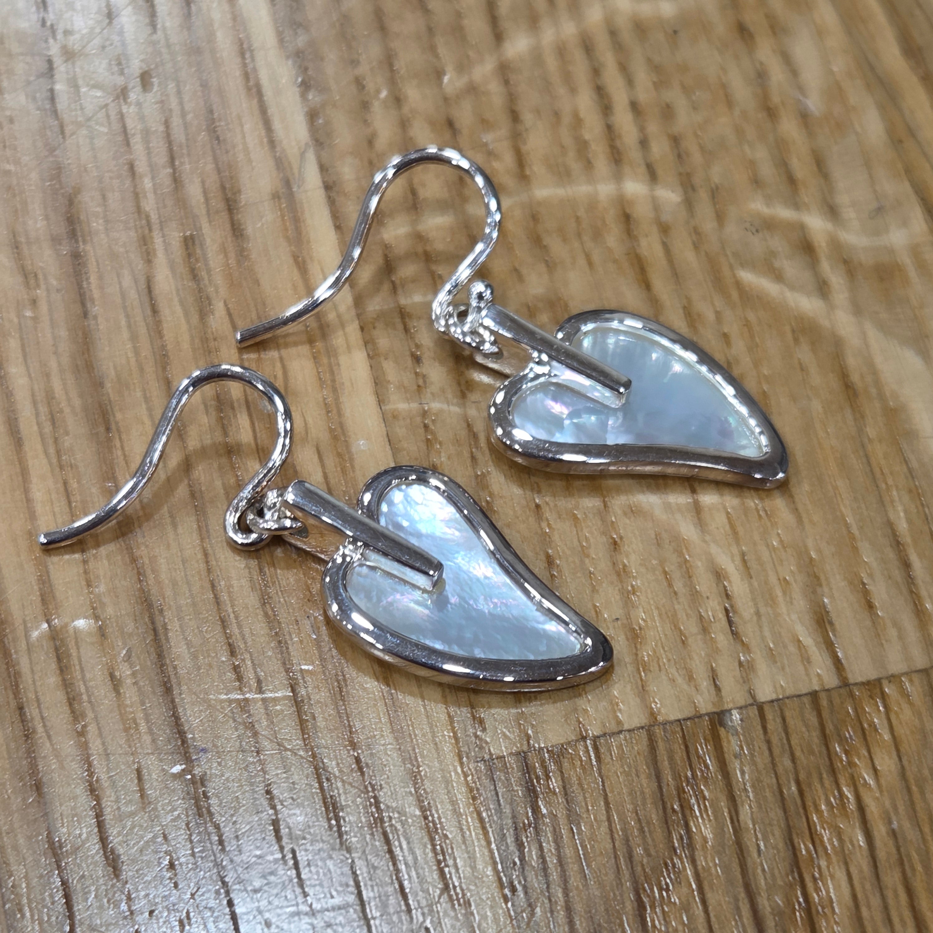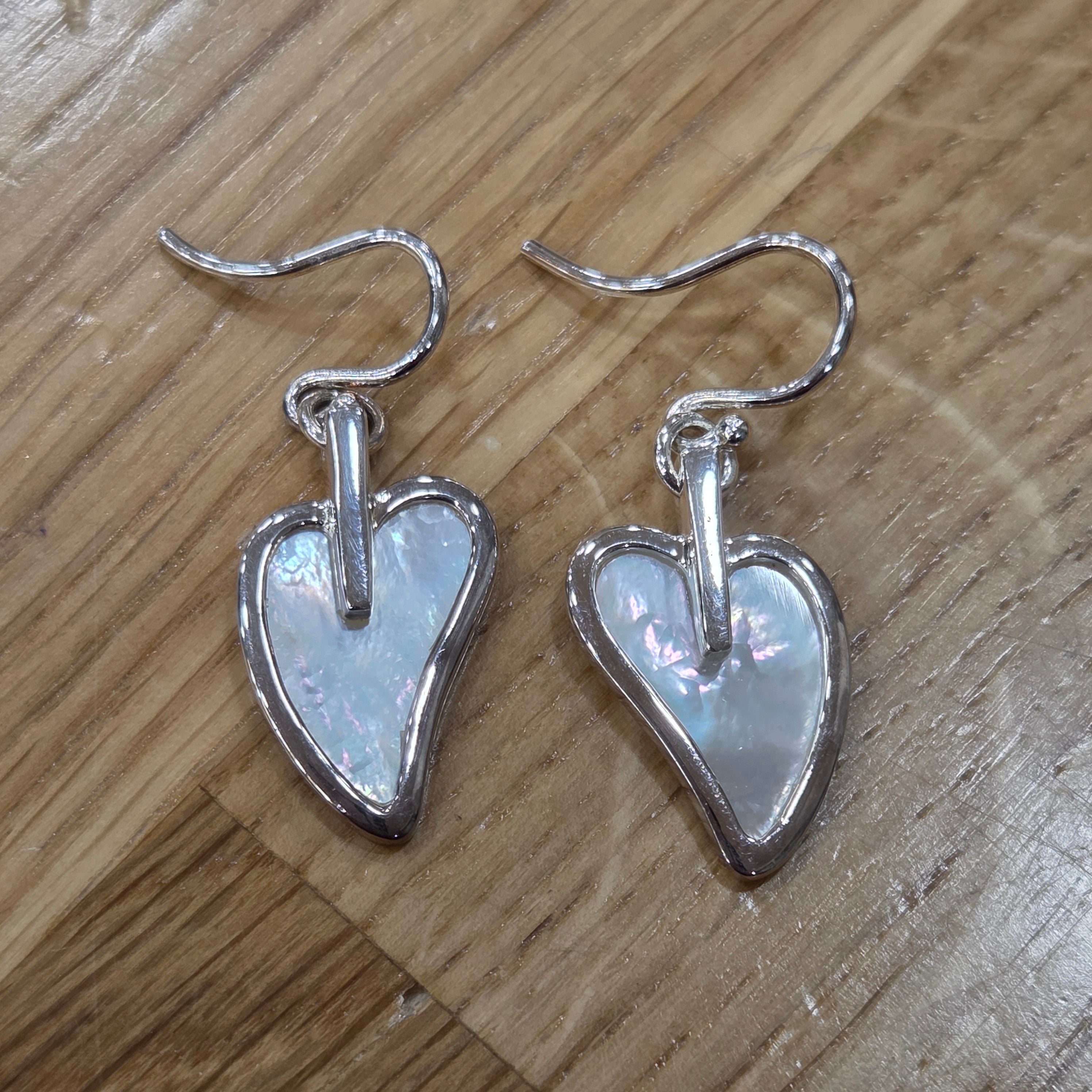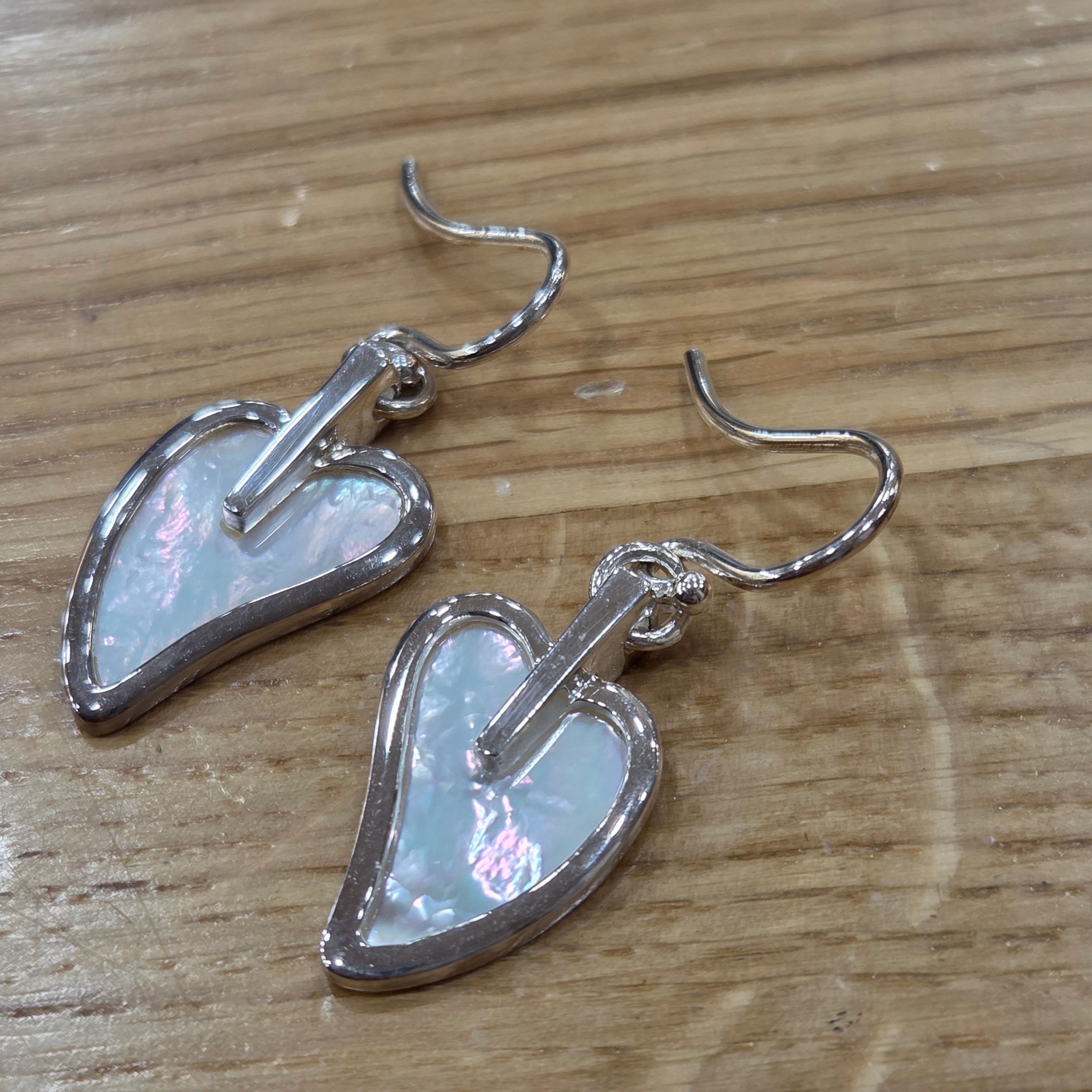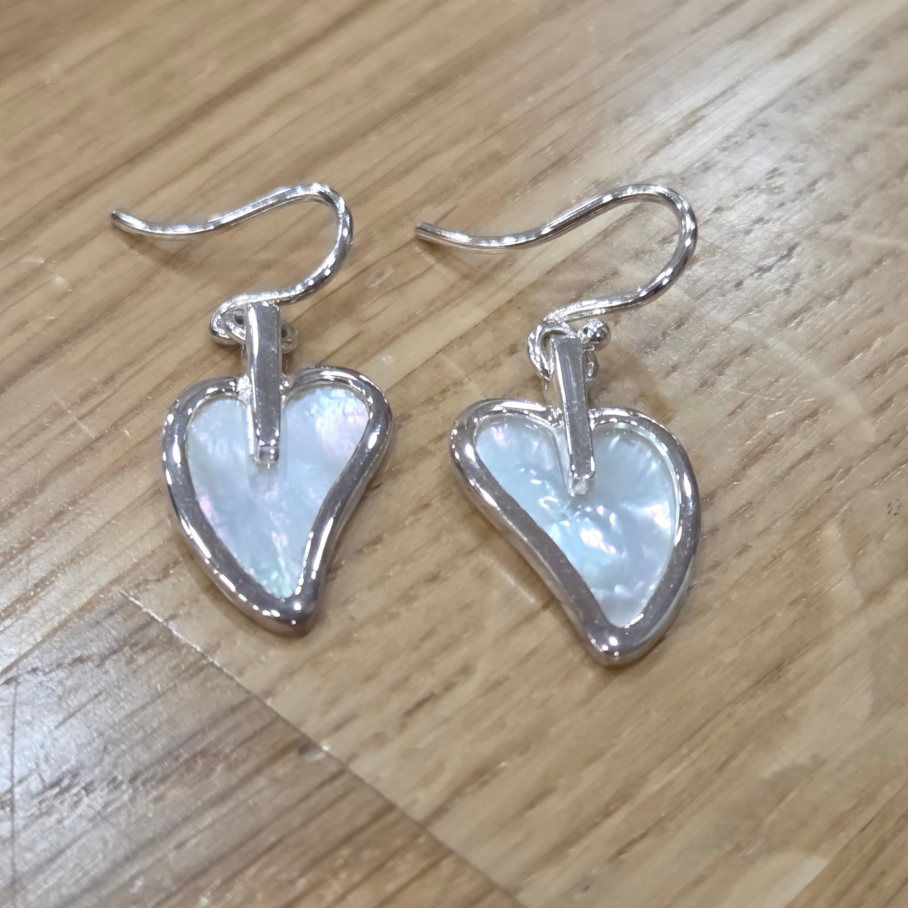 Radiant mother of pearl hearts suspended from sterling silver create an effortlessly elegant accessory that catches the light beautifully. These timeless drop earrings bring a touch of natural shimmer to any look, combining classic design with the iridescent charm of genuine pearl.
