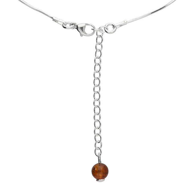 This sterling silver necklace features a striking teardrop amber pendant, enhanced by a grouping of marquise amber stones in rich cognac, vibrant lemon, and deep cherry shades. All beautifully suspended on a delicate snake chain, it makes a captivating statement.