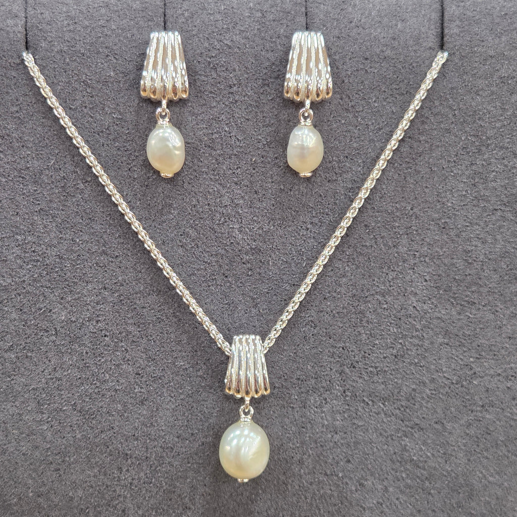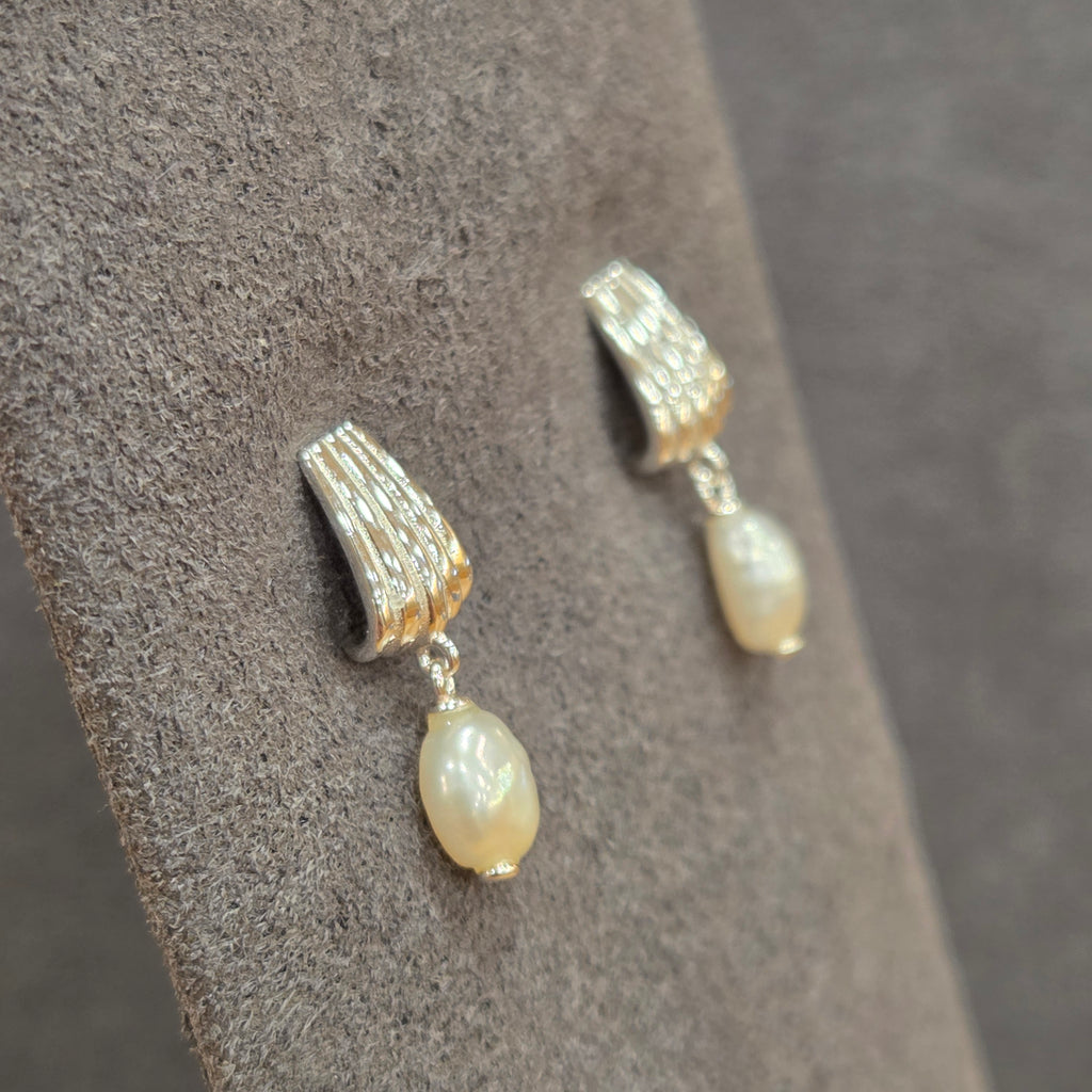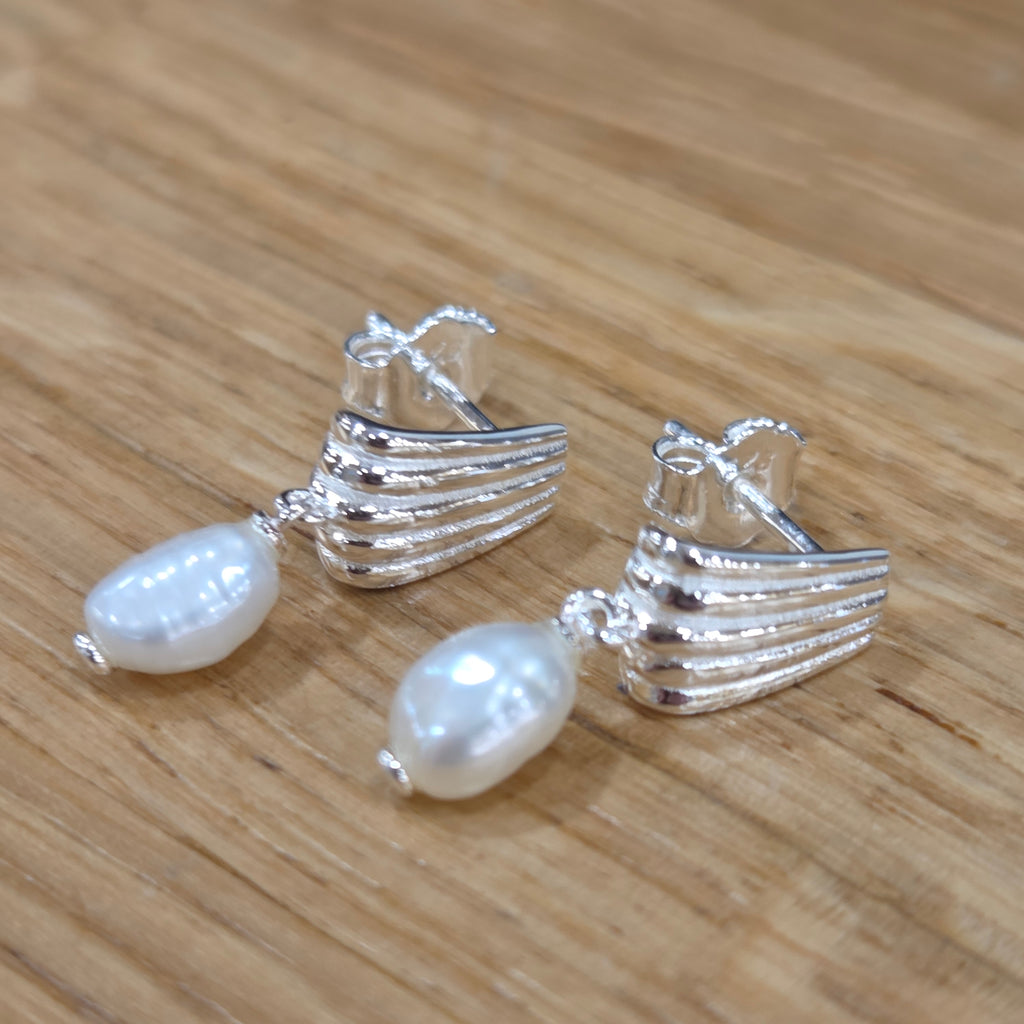 These silver drop earrings feature a vintage shell-inspired design paired with lustrous freshwater pearls, creating a timeless and elegant accessory. A coordinating pendant is also offered to perfectly complement these earrings.