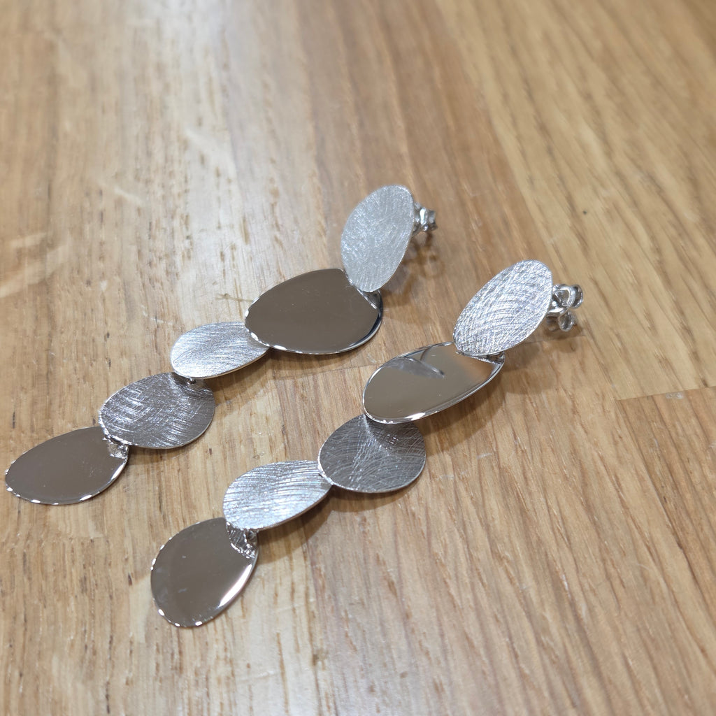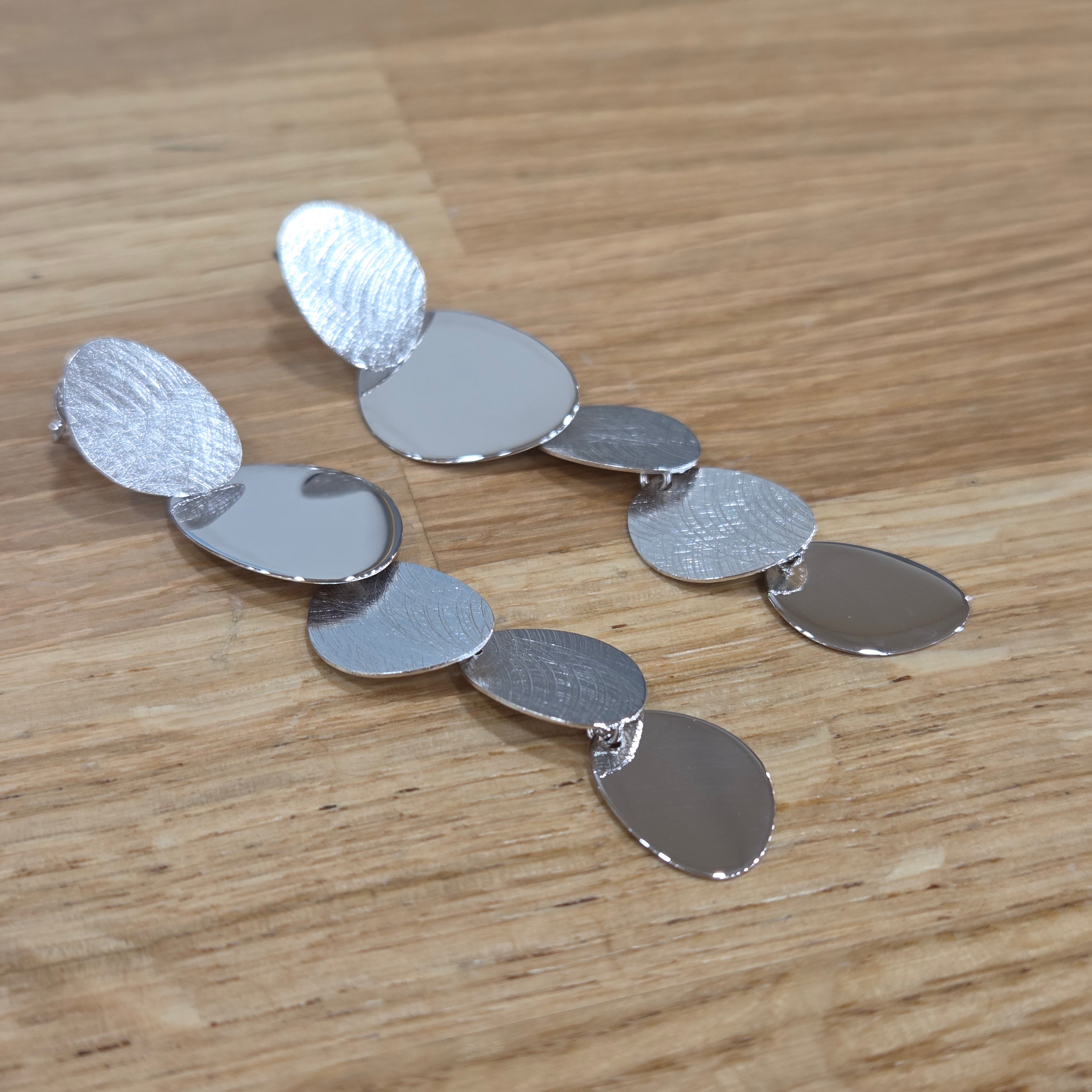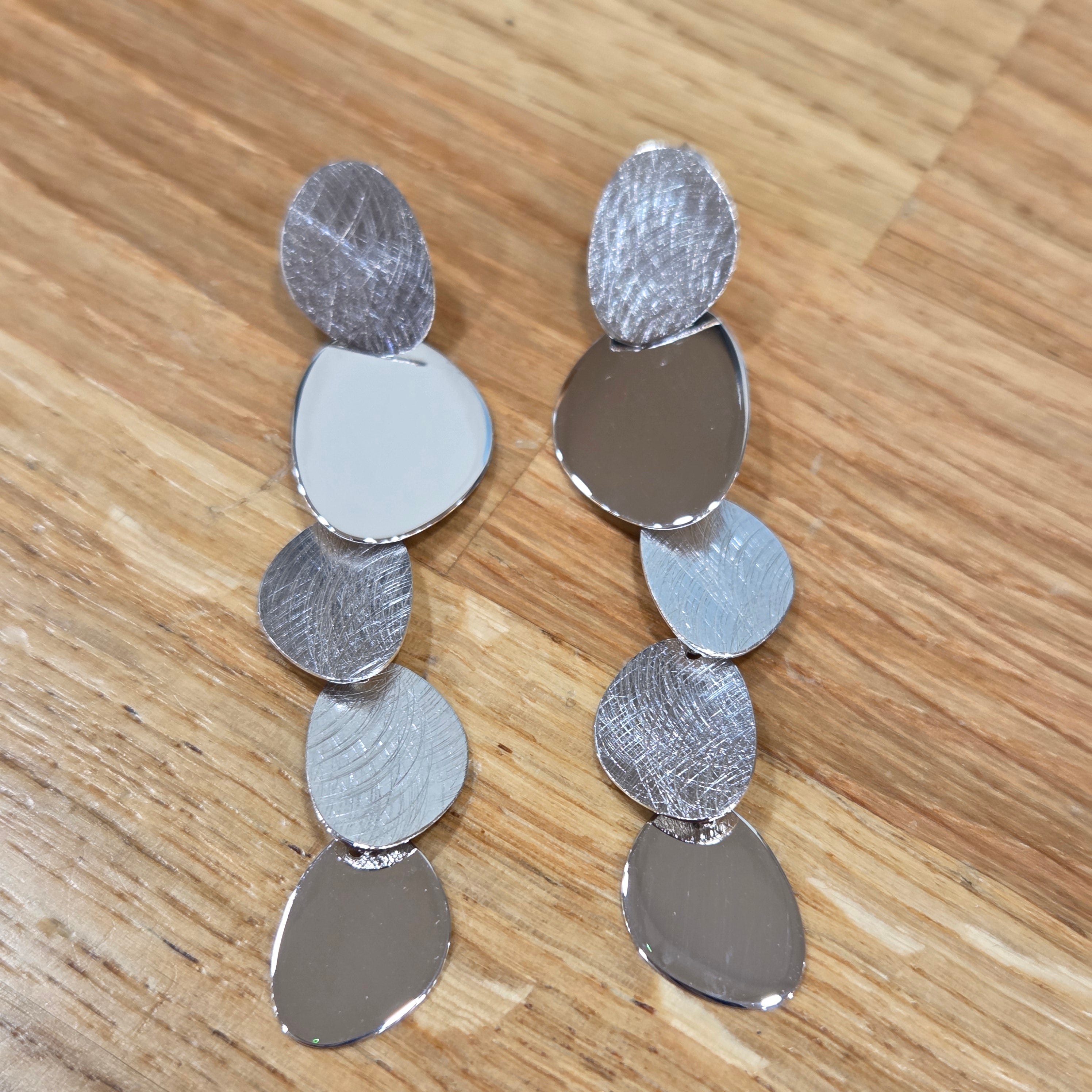 Elevate your jewellery collection with these striking pebble drop earrings, featuring a captivating contrast between polished and textured surfaces. The multi-link design creates dramatic movement and visual interest, making them the perfect choice for those who want to make a bold impression. Crafted in silver, these statement pieces effortlessly transform any outfit from ordinary to extraordinary.