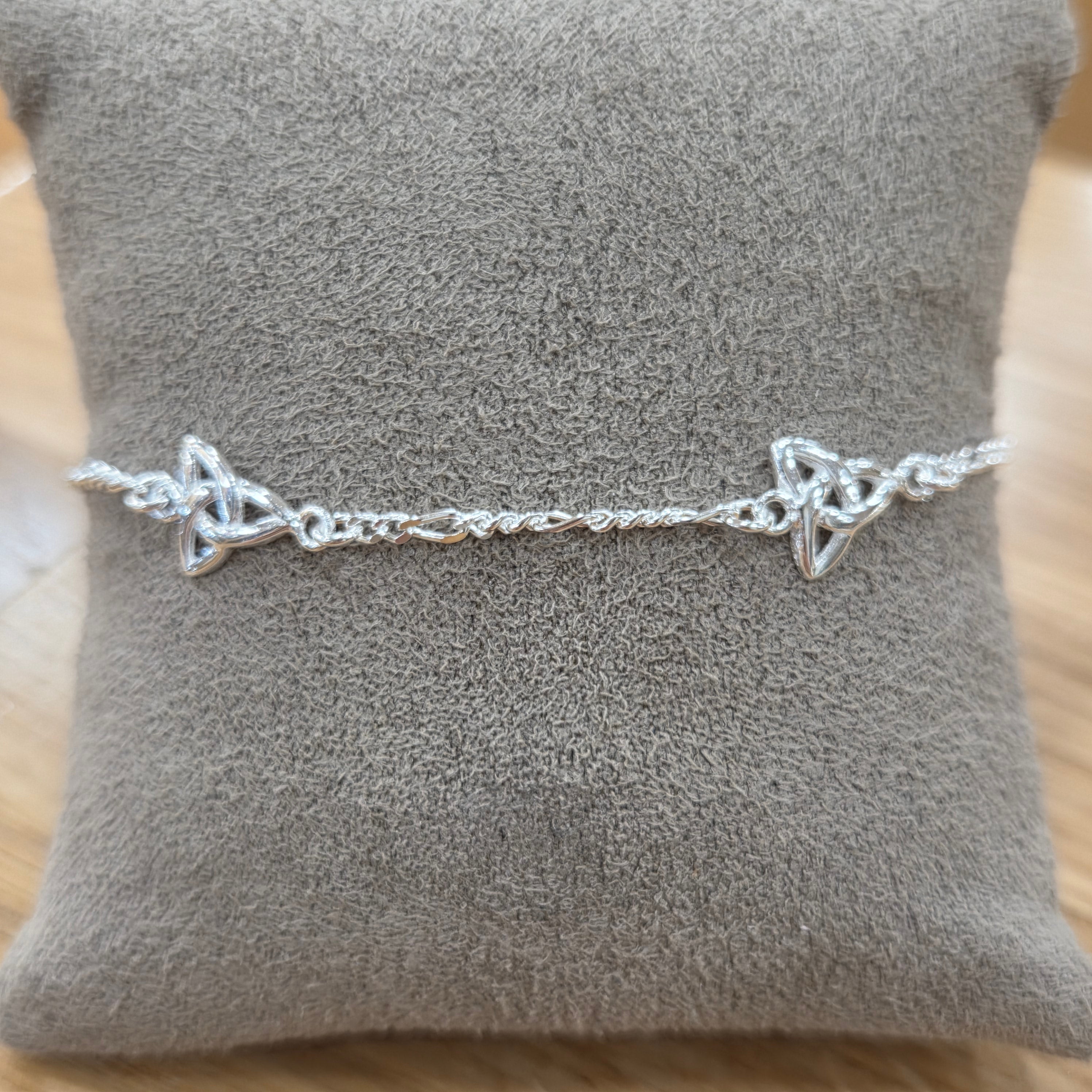 Elevate your everyday style with this striking sterling silver chain bracelet, featuring an intricately crafted Celtic trinity knot link. The timeless trinity knot symbolises unity and interconnection, making it a meaningful piece that transcends fleeting trends. Delicate yet substantial, this bracelet pairs effortlessly with any outfit whilst adding a touch of Celtic heritage and sophistication. Perfect as a personal keepsake or thoughtful gift, it's jewellery that tells a story.
