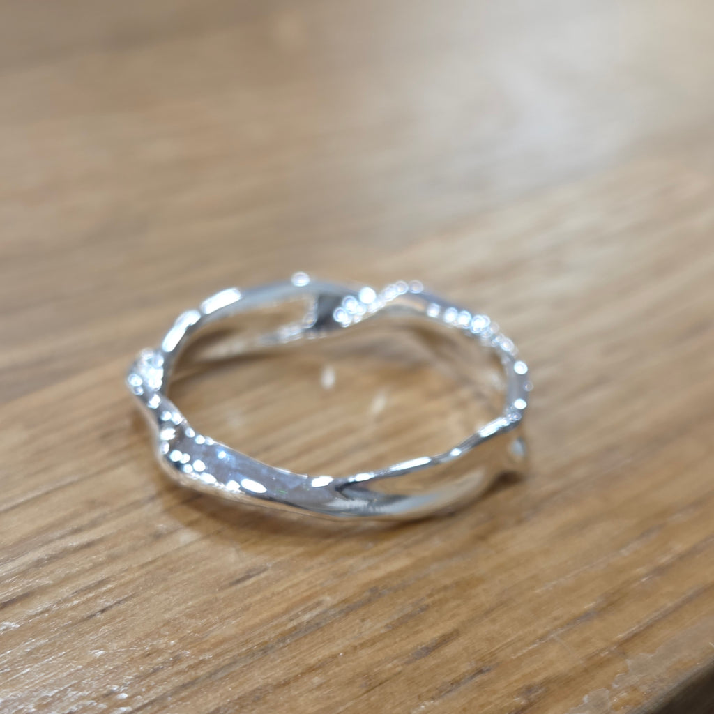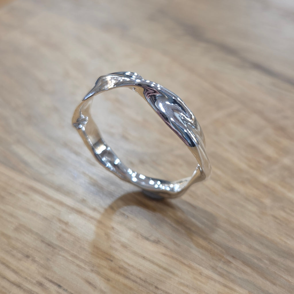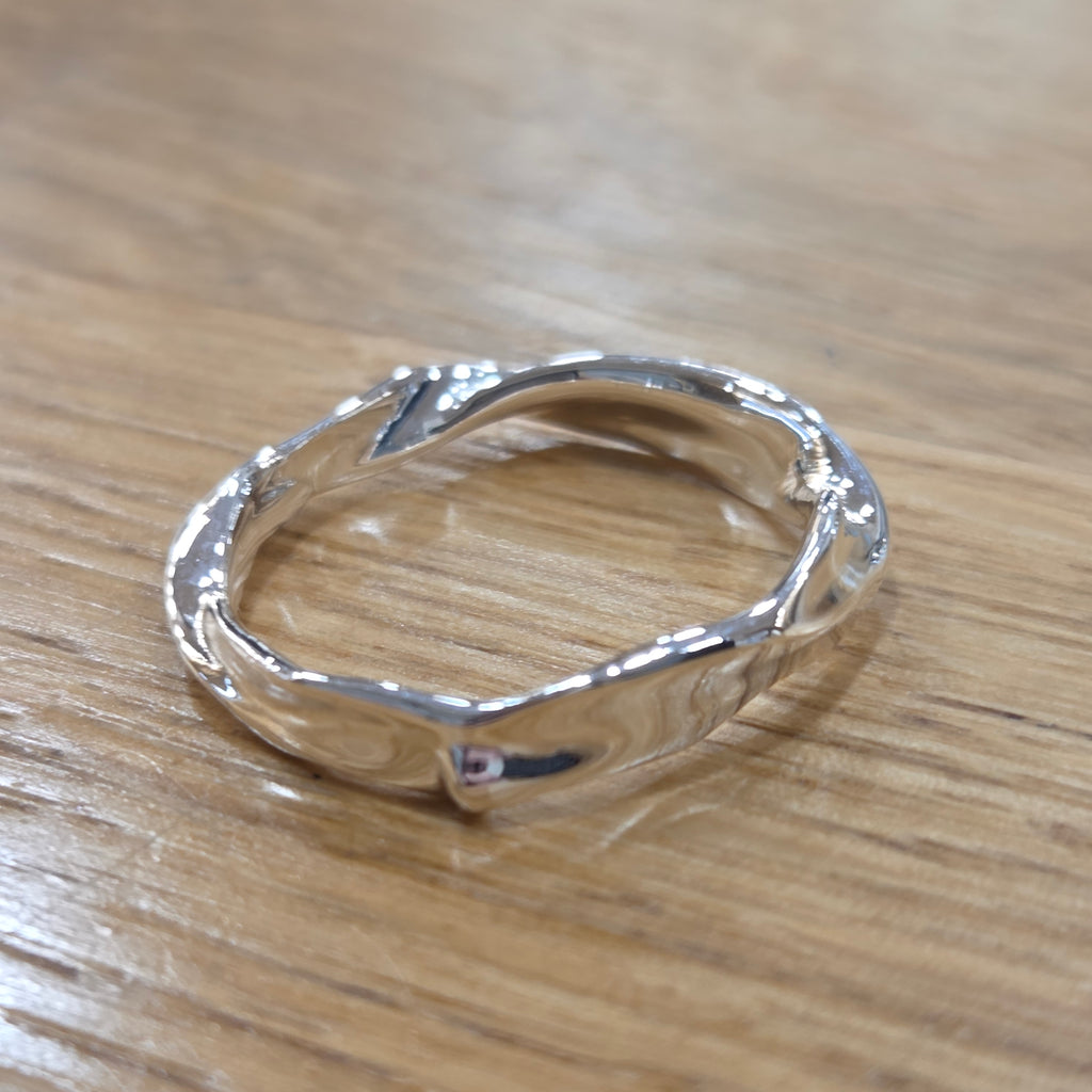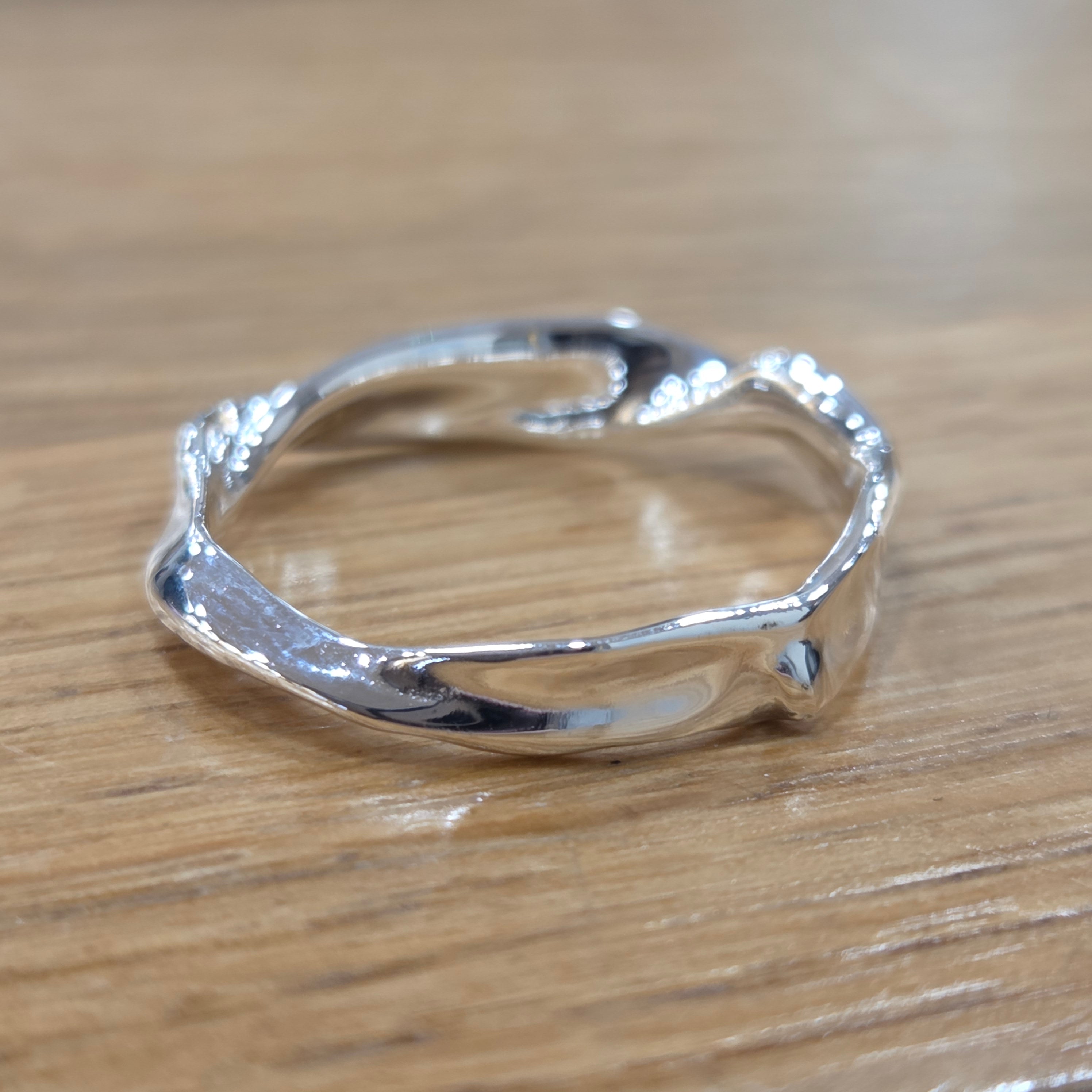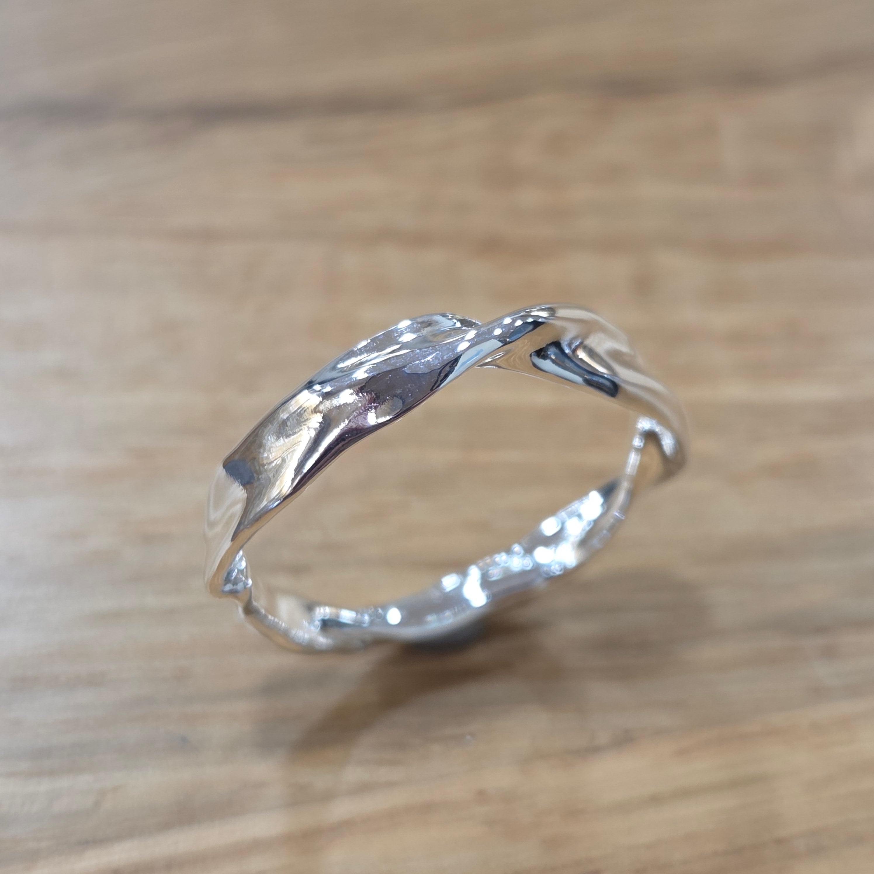 This sterling silver ring features a beautifully twisted ribbon design, adding a unique and elegant touch to your jewelry collection.