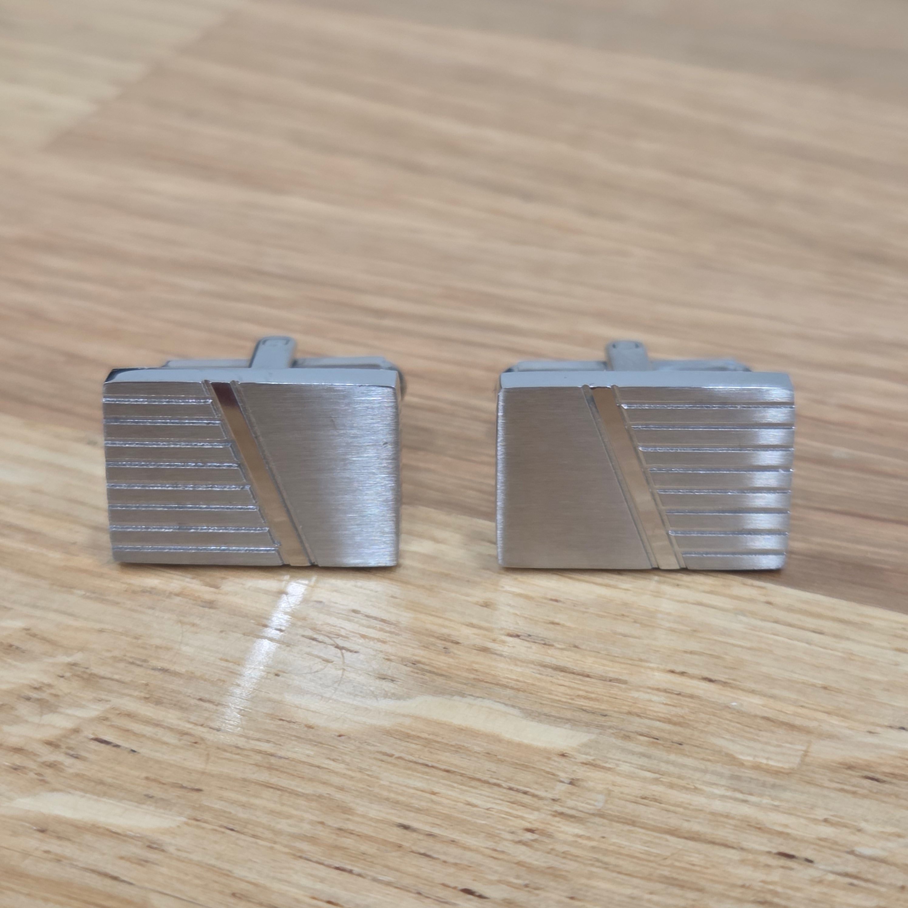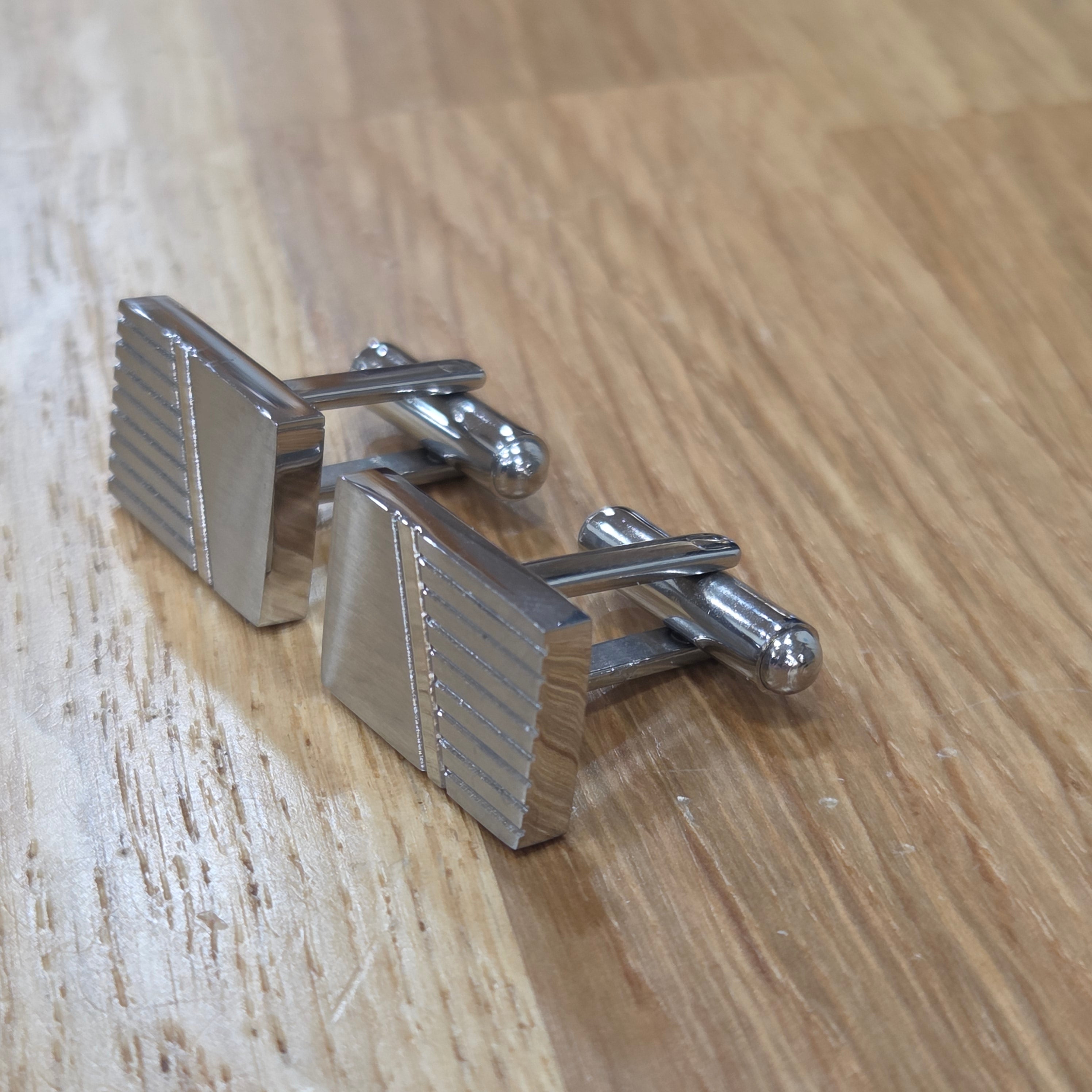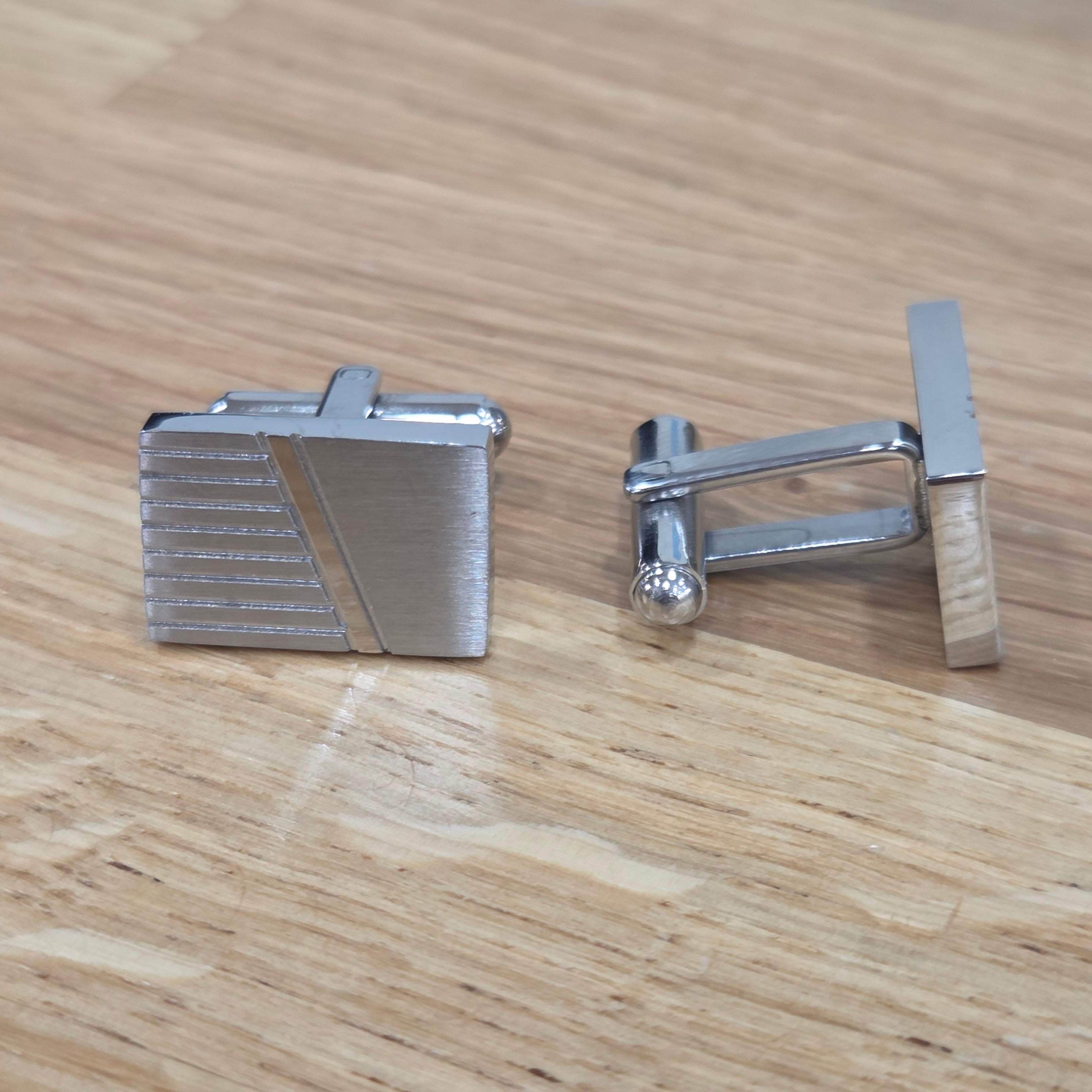 Elevate your formal wear with these striking stainless steel cufflinks, where contemporary design meets timeless sophistication. The expertly crafted combination of matte and polished textures creates visual depth and character, ensuring your cuffs make a memorable impression. Durable stainless steel construction guarantees these versatile pieces will remain pristine through countless occasions, making them an essential investment for the discerning gentleman's accessory collection.