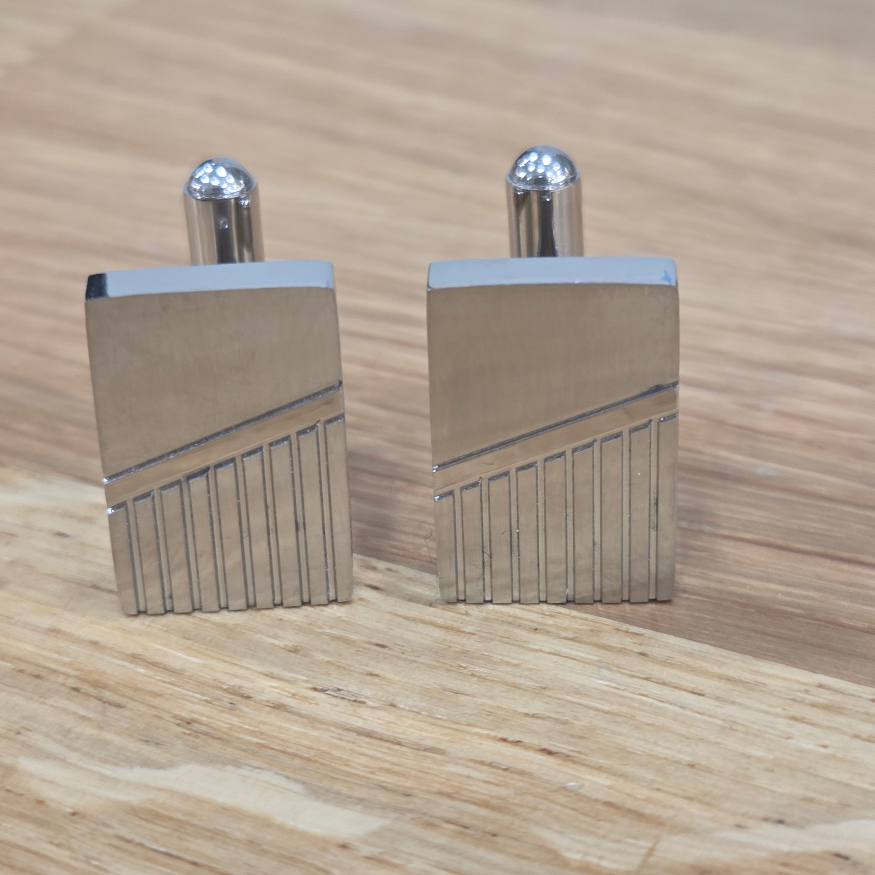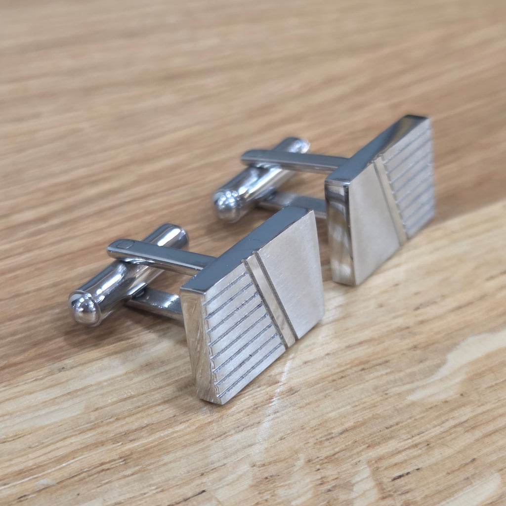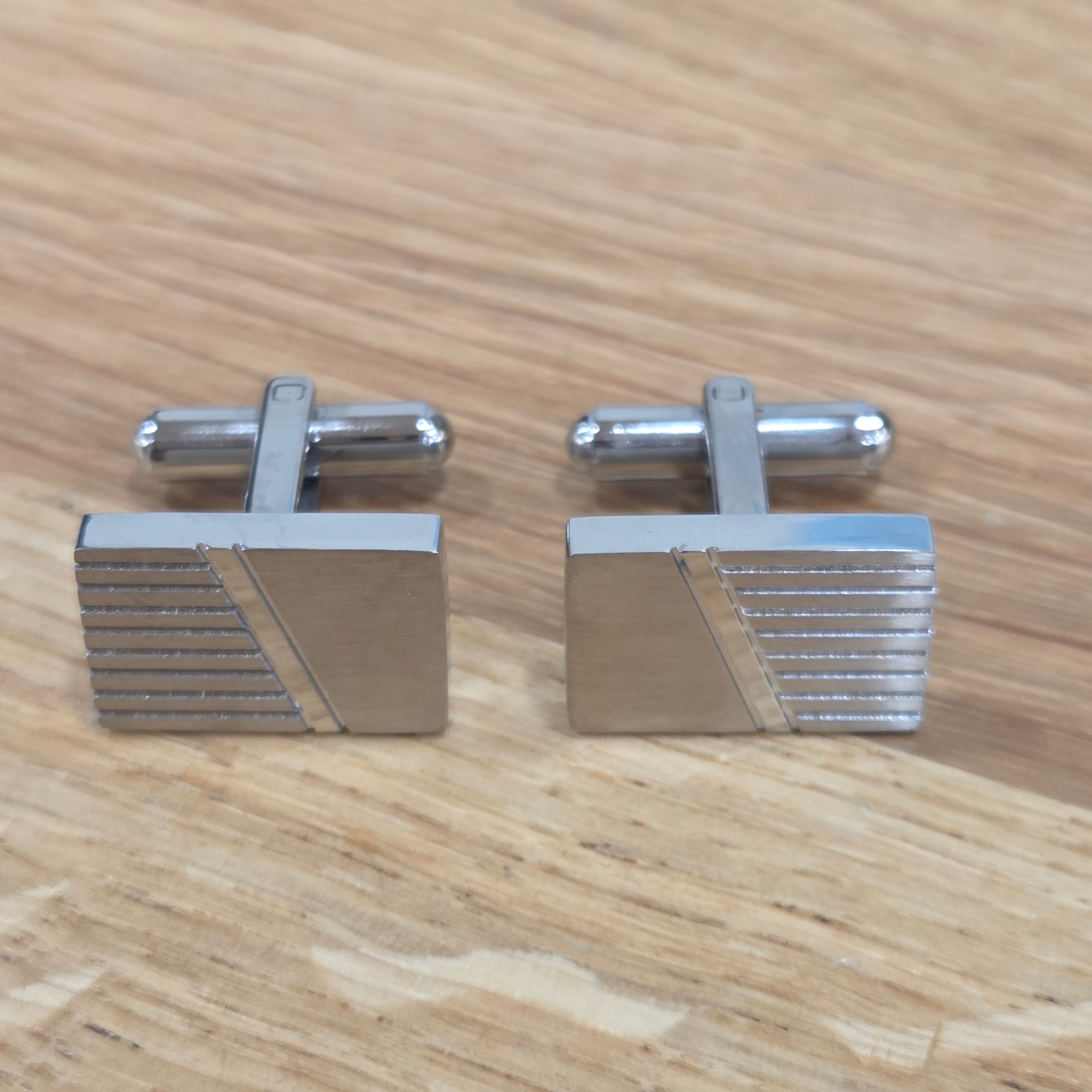 Elevate your formal wear with these striking stainless steel cufflinks, where contemporary design meets timeless sophistication. The expertly crafted combination of matte and polished textures creates visual depth and character, ensuring your cuffs make a memorable impression. Durable stainless steel construction guarantees these versatile pieces will remain pristine through countless occasions, making them an essential investment for the discerning gentleman's accessory collection.