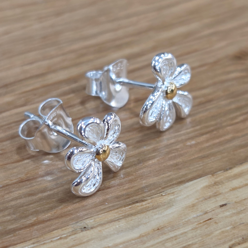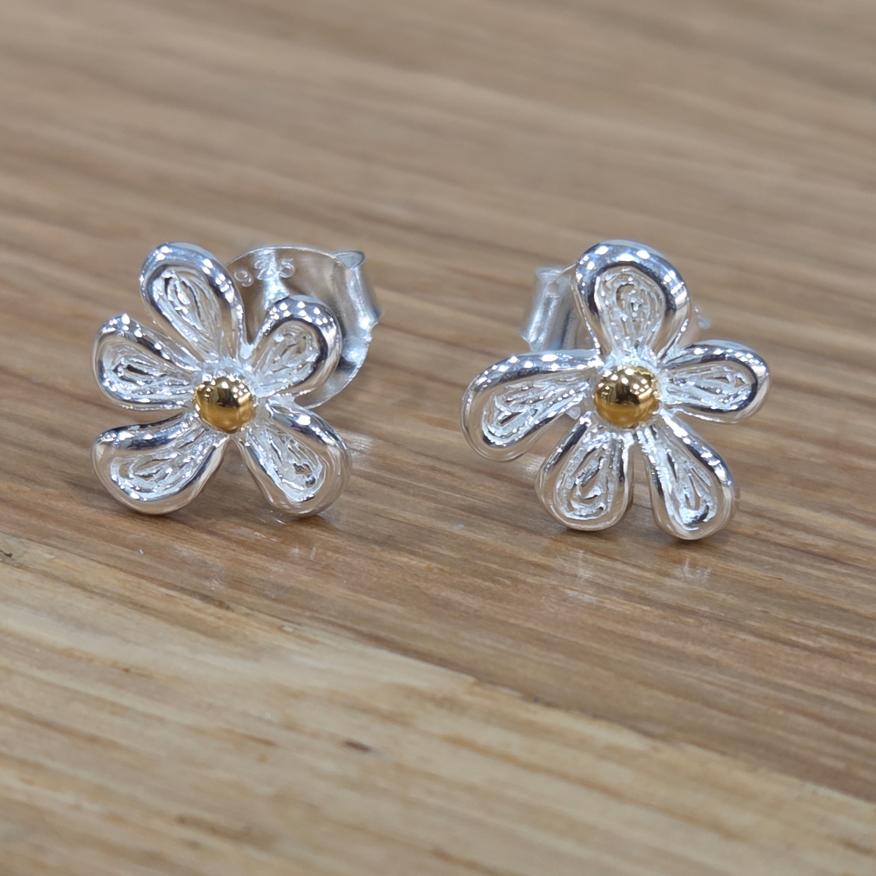 Make a refined statement with these distinctive flower studs, featuring an asymmetrical design that blends brushed silver with a gleaming gold-plated heart. The layered textures add depth and sophistication to any outfit, while their versatile charm means you can wear them solo or combine with the matching pendant for a coordinated, luxe finish.